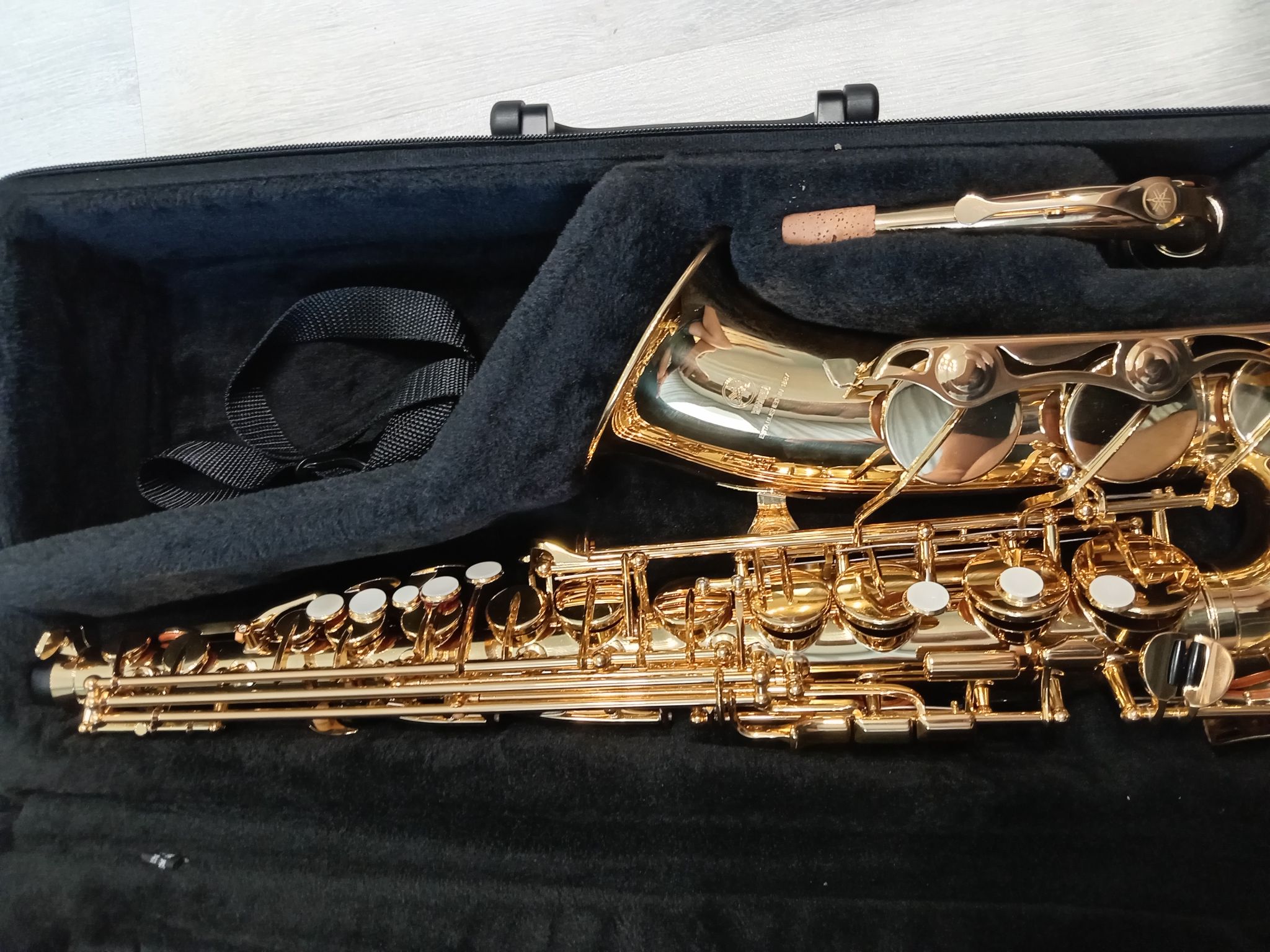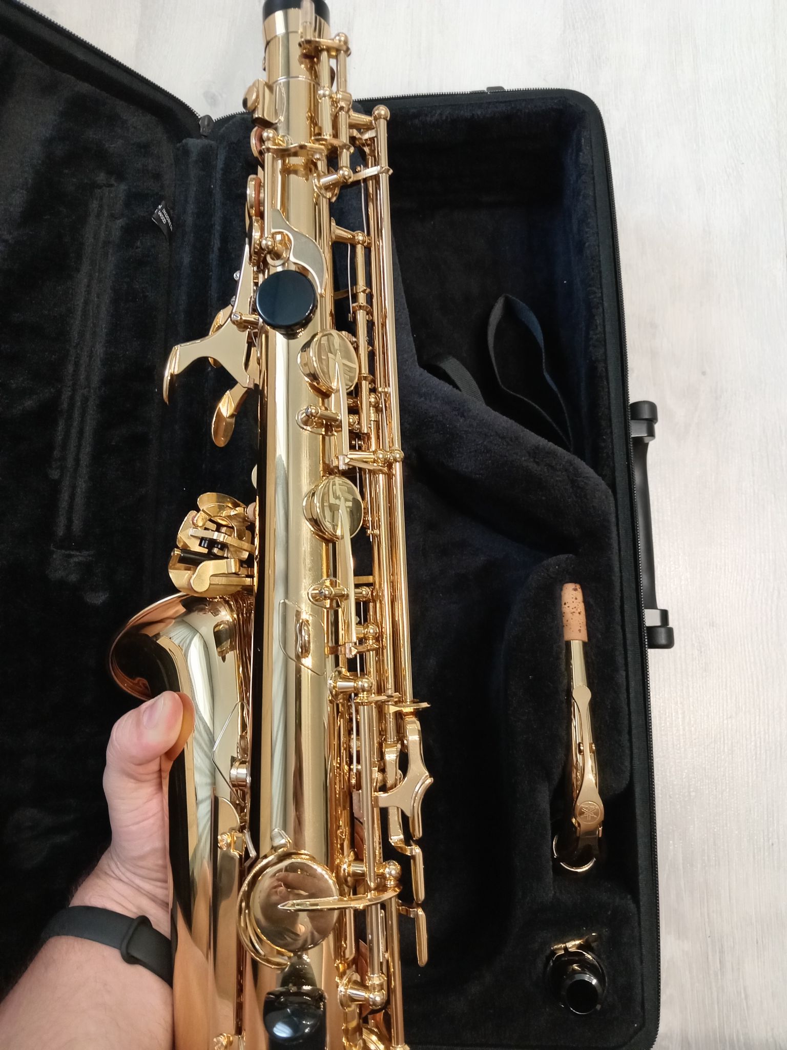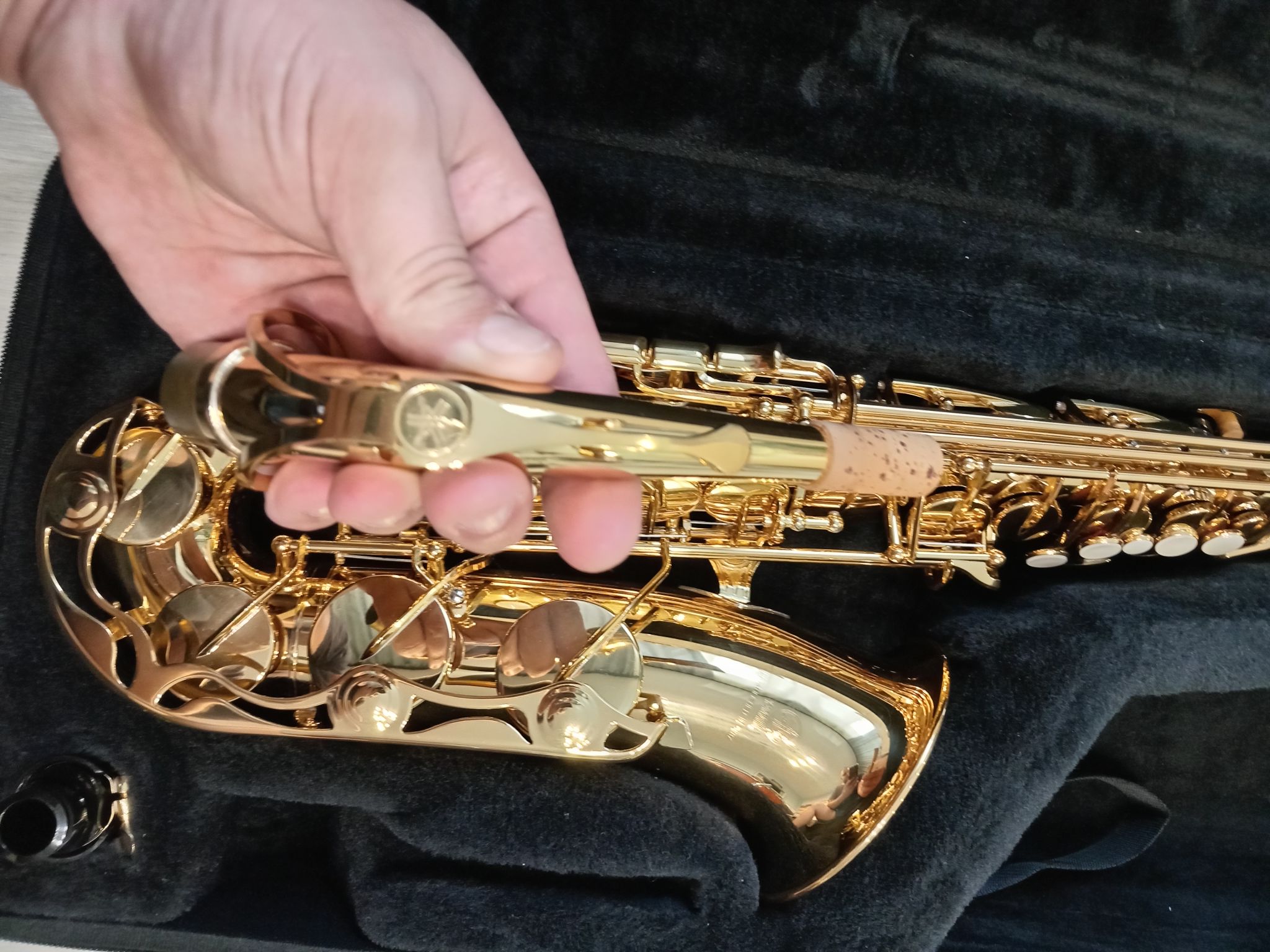 Комплектация полная: саксофон, эска, мундштук Yamaha 4c с лигатурой и колпачком , гайтан, фирменный очень удобный полужесткий кофр "Yamaha, трость.