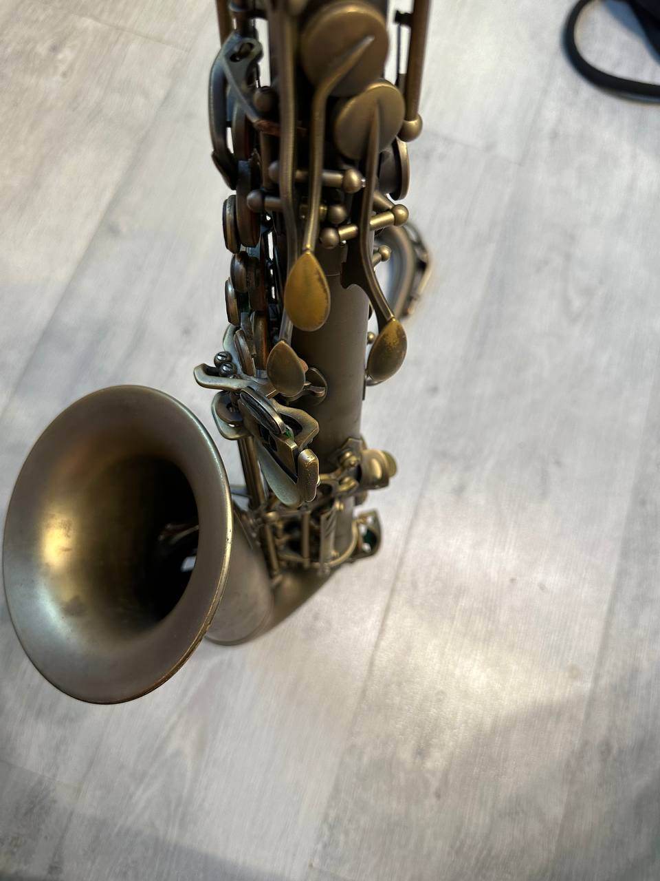 Комплектация полная: саксофон, эска, мундштук с лигатурой и колпачком, гайтан, фирменный очень удобный кофр, трость.