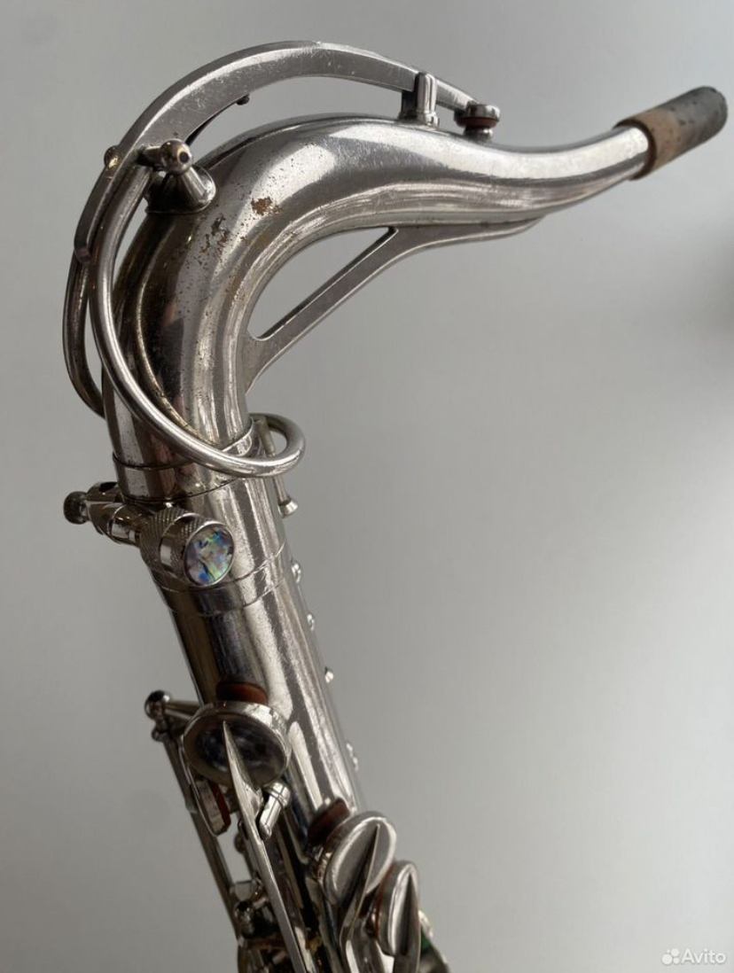Саксофон с никелевым покрытием, которое очень хорошо сохранилось.