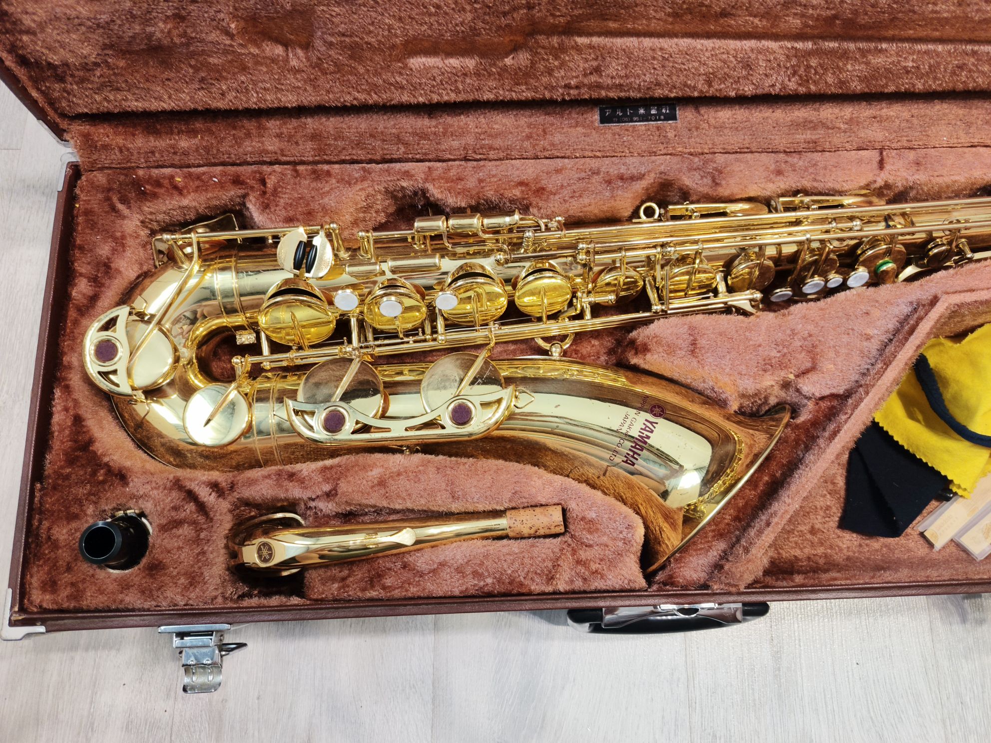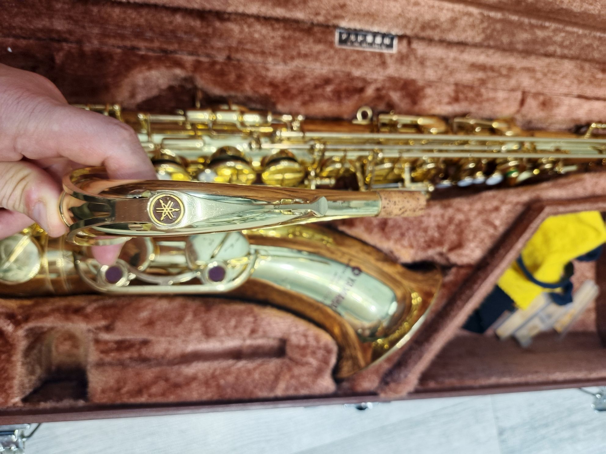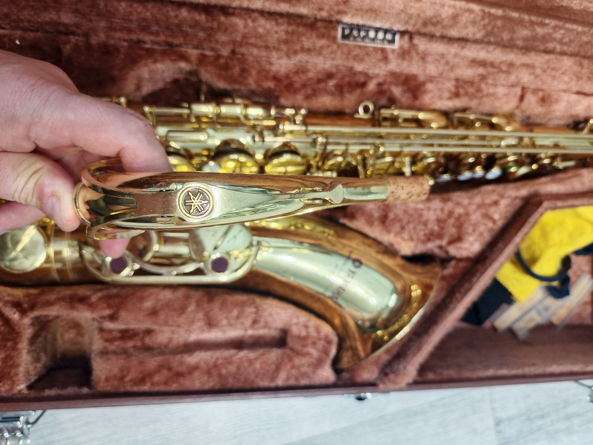 Комплектация полная: саксофон, эска, мундштук Yamaha 4c с лигатурой и колпачком, наклейки на мундштук, гайтан, фирменный очень удобный жесткий кофр Yamaha, трость, смазка для пробки, заглушка.