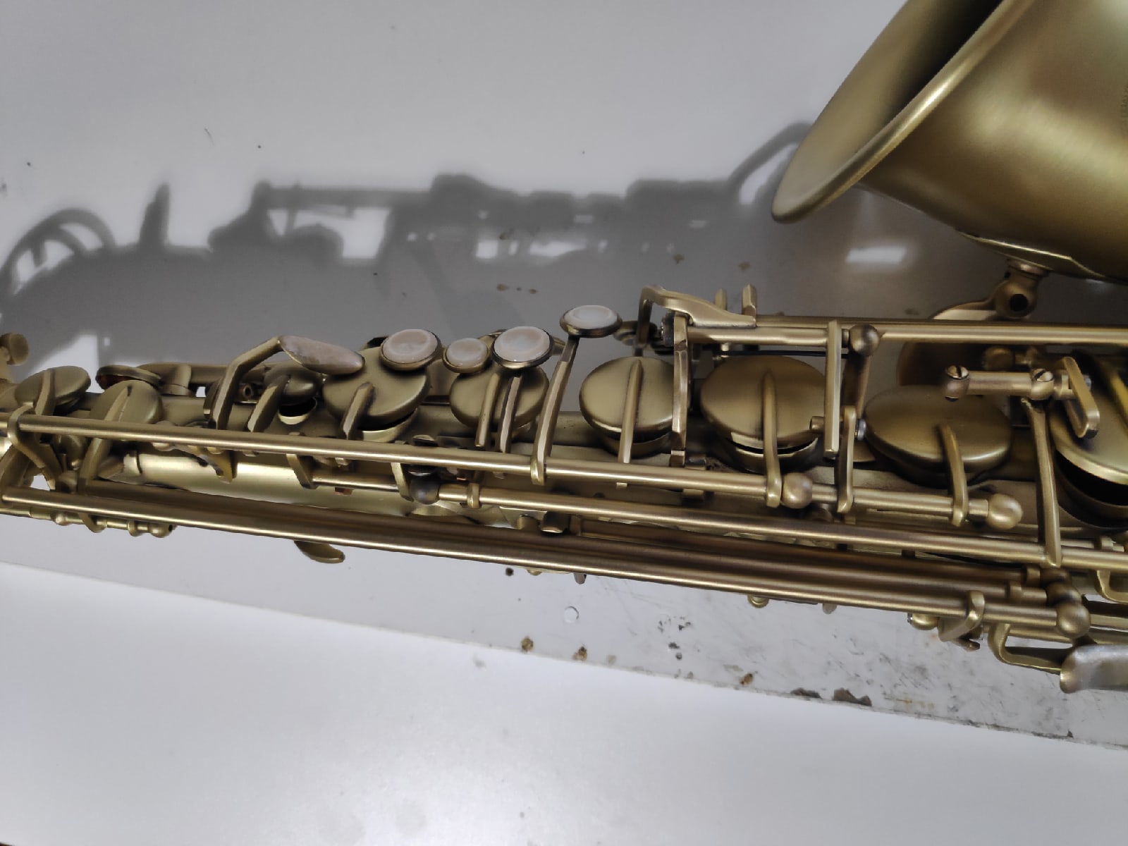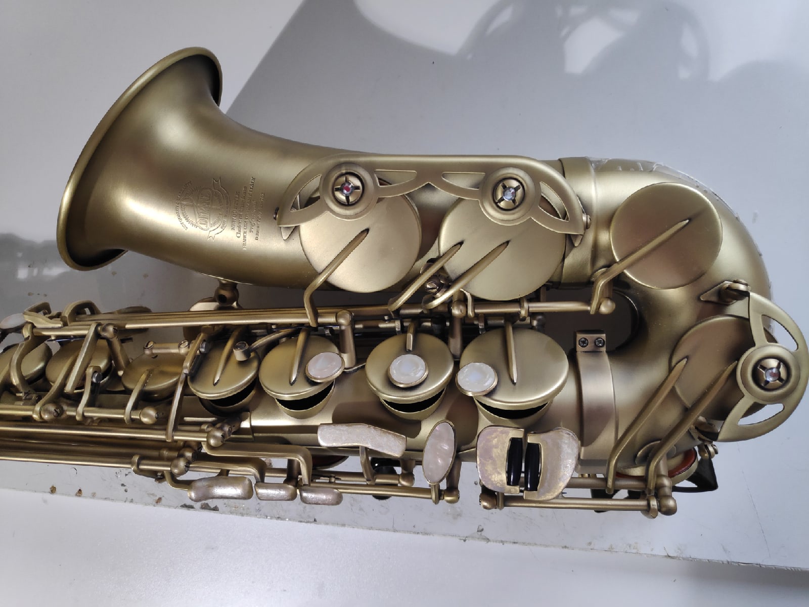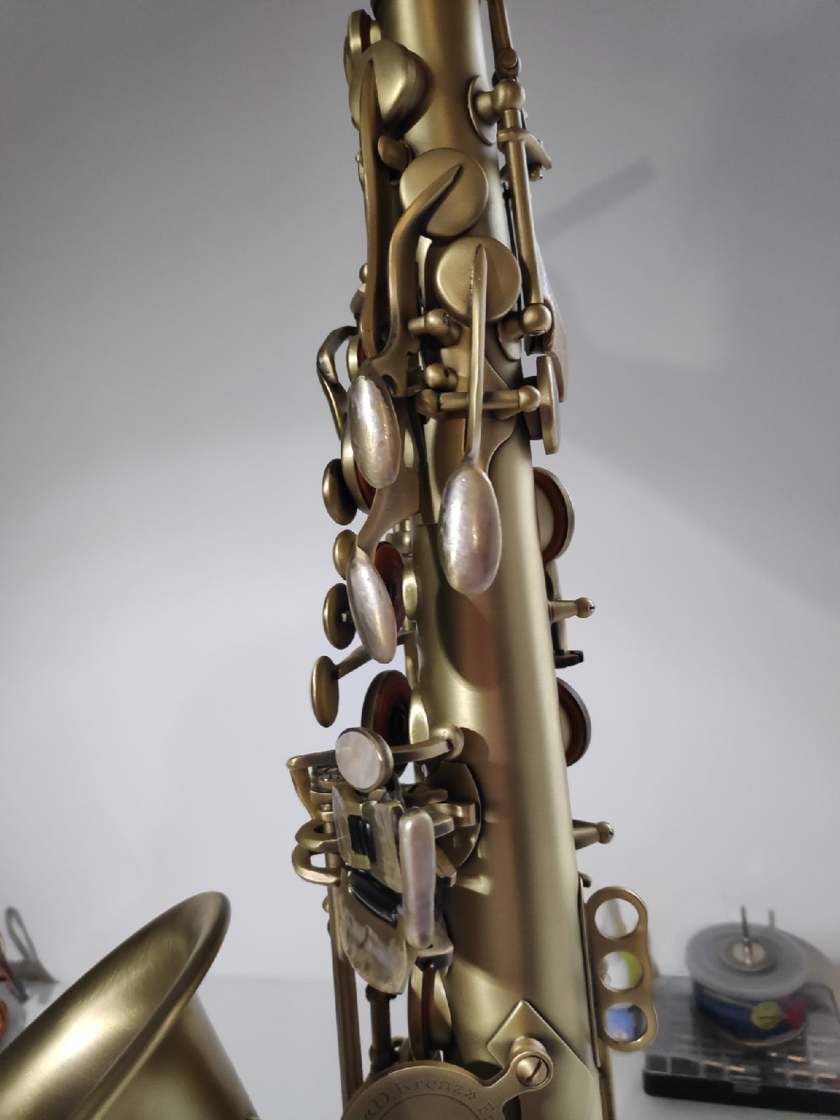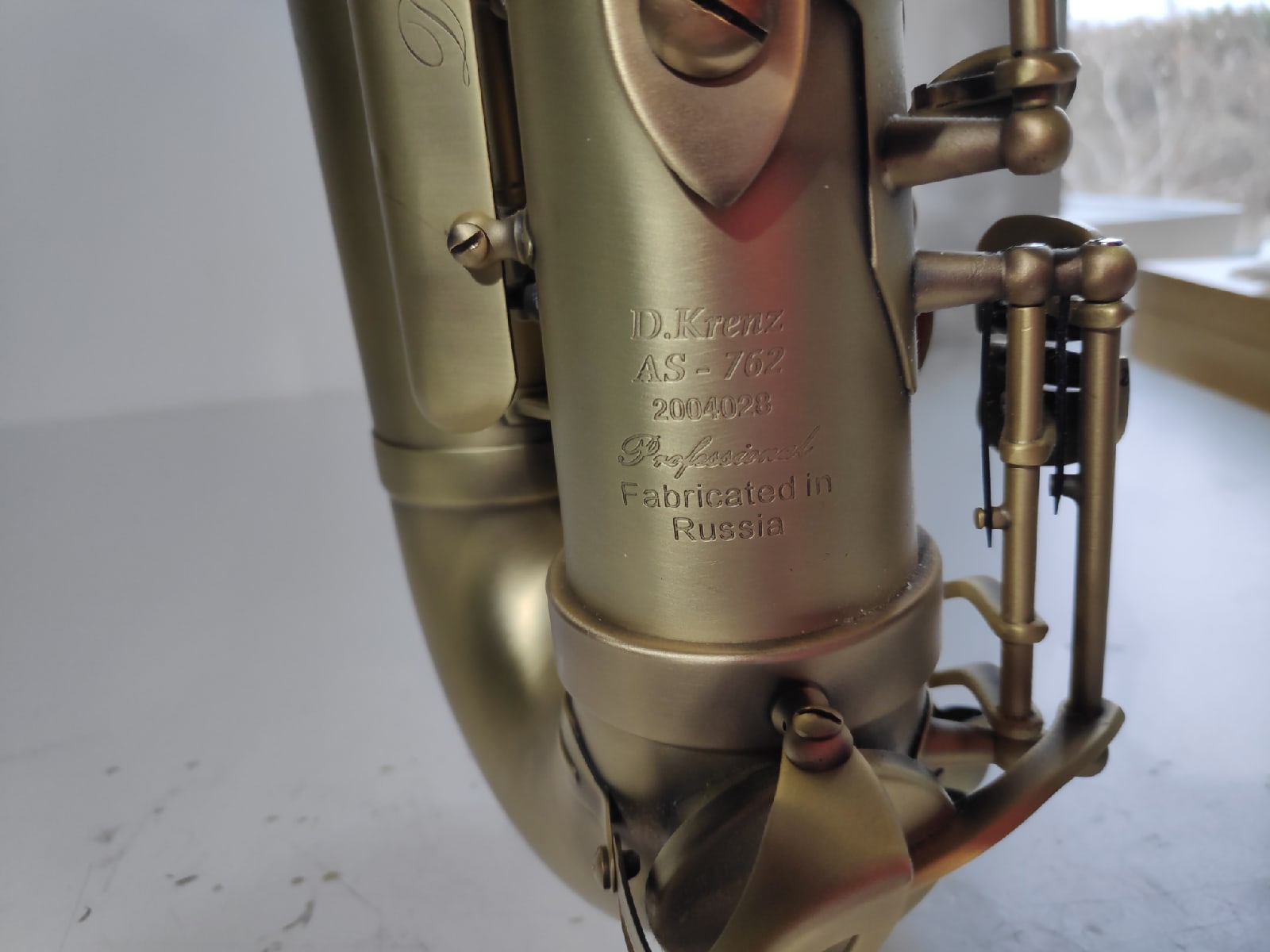 Альт-саксофон D.Krenz 762 Antique. Строй Ми-бемоль (Eb). Полупрофессиональный. Покрытие – Antique. Ручная гравировка. Приятная удобная современная механика. Итальянские подушки. Качественная сборка. Передний «Фа» (Front “F”). Высокий Фа-диез (F#). Комплектация – мундштук с лигатурой и колпачком; шейный гайтан; салфетка для протирки; представительный жесткий кейс с ремнями для ношения на спине. Покрытие Antique придает инструменту необычный эффектный внешний вид и дополнительную глубину в окраске звука. Конструктивные особенности: корпус изготовлен из улучшенного латунного сплава (полутомпака), усиленное ребро жесткости на эске, дополнительные ребра на нижних клапанах «До» и «Си», тройное кольцо под гайтан, дополнительная регулировка. Инструмент предпочтителен у джазовых музыкантов разного уровня мастерства. (Паста с сайта производителя https://saxmarket.ru/catalog/detail/sak ... 2_antique/ )