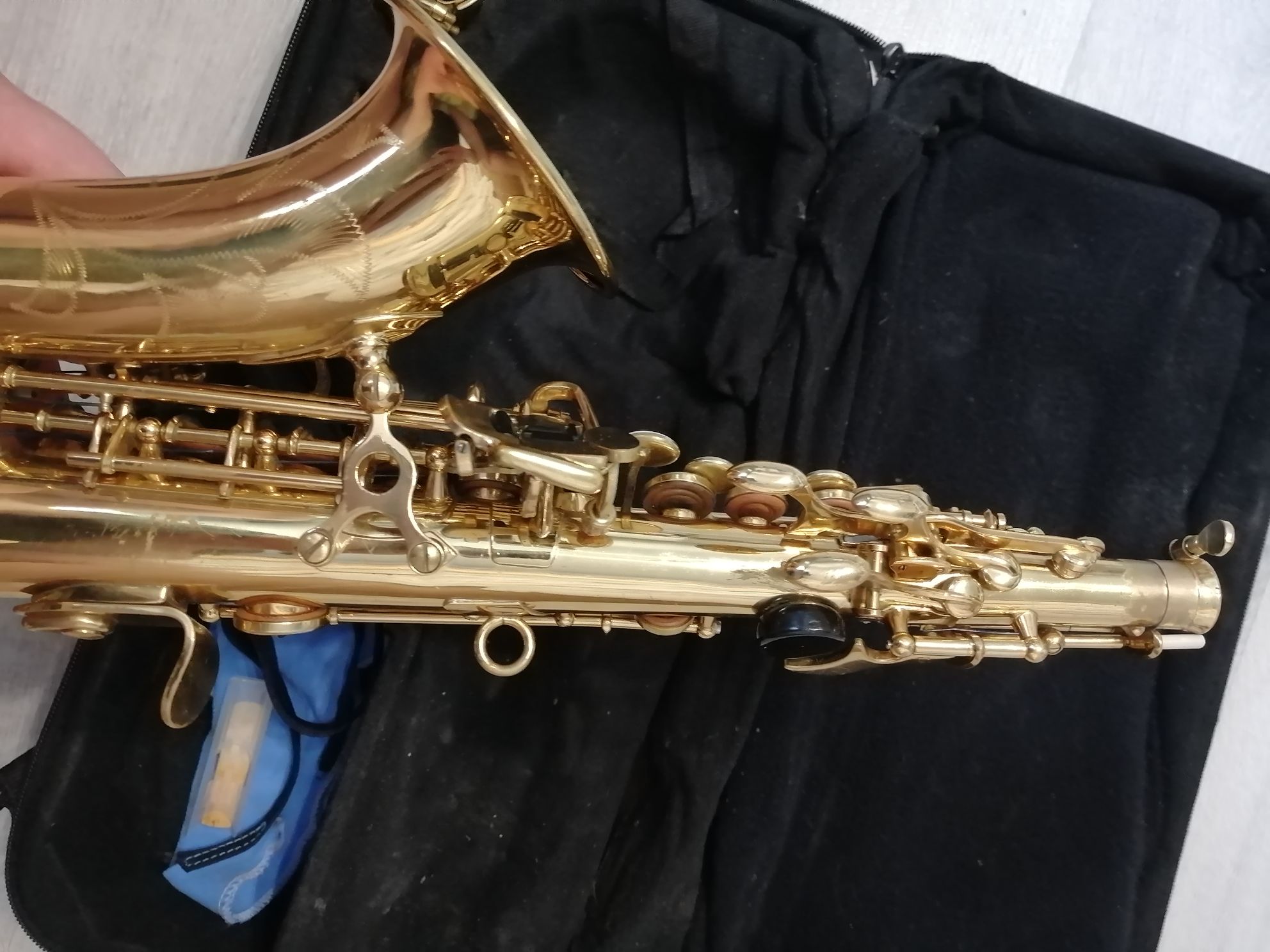На корпусе саксофона есть очень незначительные потертости (внимательно смотрите фото), которые на качество звука не влияют. Если нужно, Комплектация полная: саксофон, эска, мундштук с лигатурой и колпачком , жёсткий родной фирменный чехол , трости, гайтан, наклейки на мундштук, смазка для пробки. На пересылку по России согласен. Цену в 24 тысячи рублей считаю вполне адекватной.