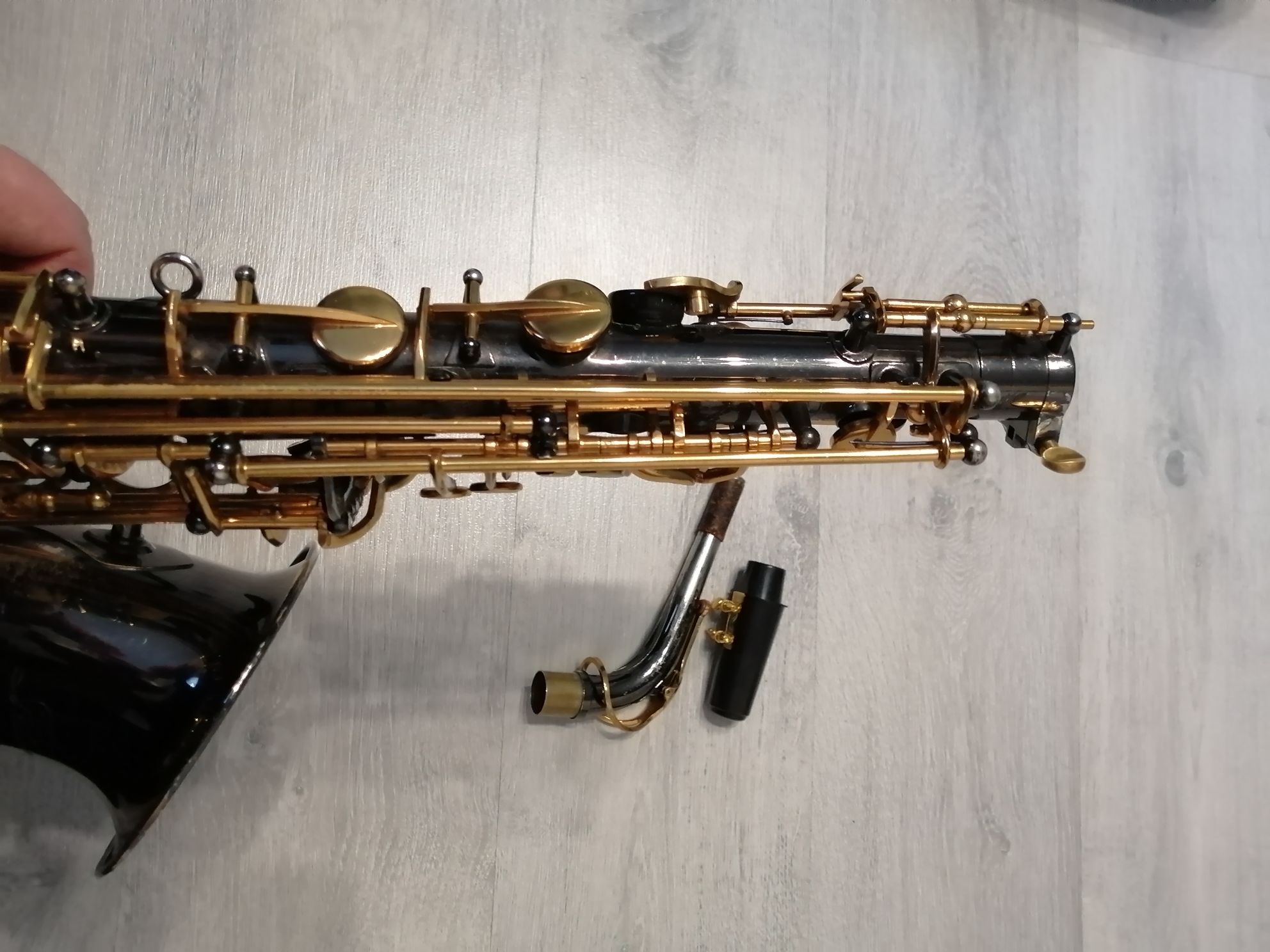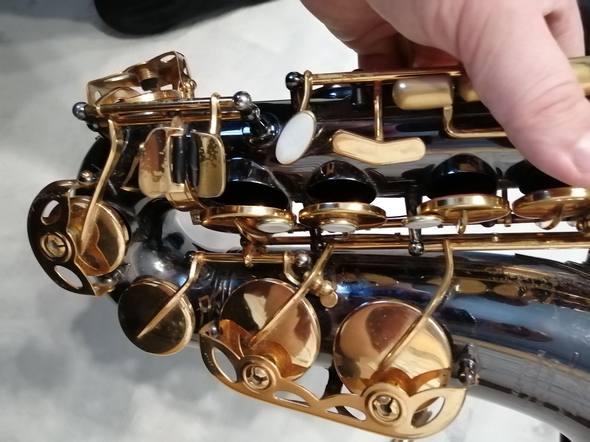 Саксофон не новый. Инструменту 5 лет. Видны следы эксплуатации: есть потертости на эске, раструбе, корпусе. (к сожалению, это неизбежно, если на инструменте заниматься, это неизбежно), кофр немного подубитый, но свои функции выполняет. Все перечисленные недостатки на звучание инструмента никоим образом не влияют.