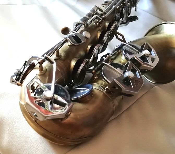 Профессиональный сакс, произведен в начале 1950-х годов, хорошее состояние и звучание, живые подушки, обезлачен, обслужен (мастер Yufaz).
