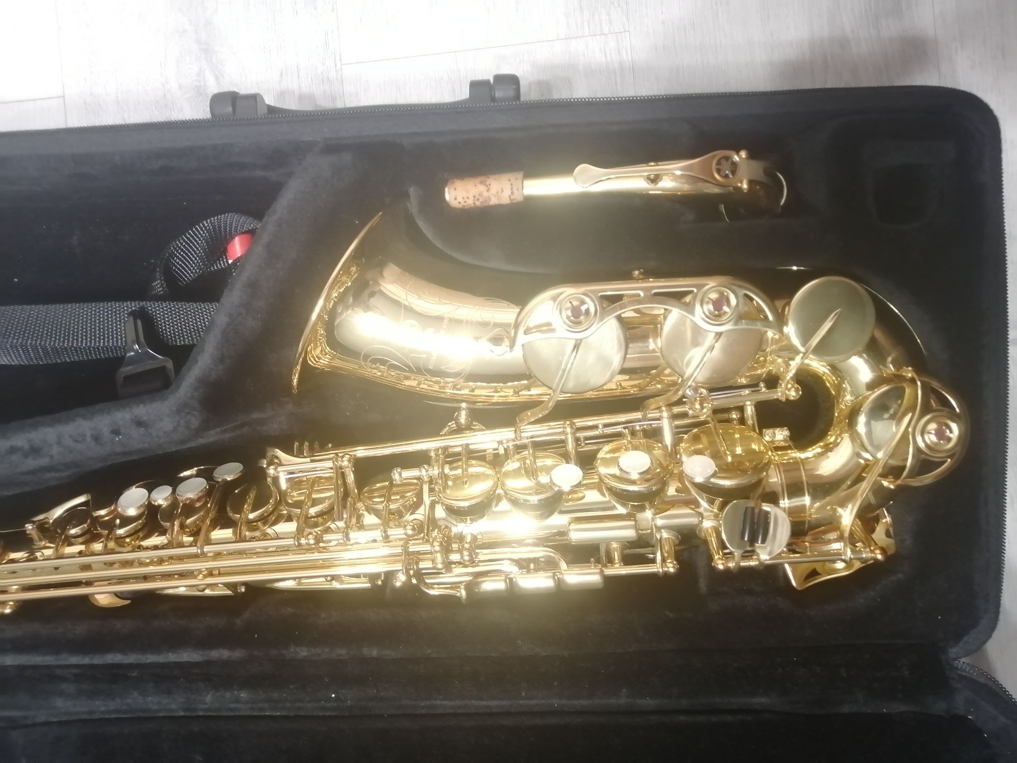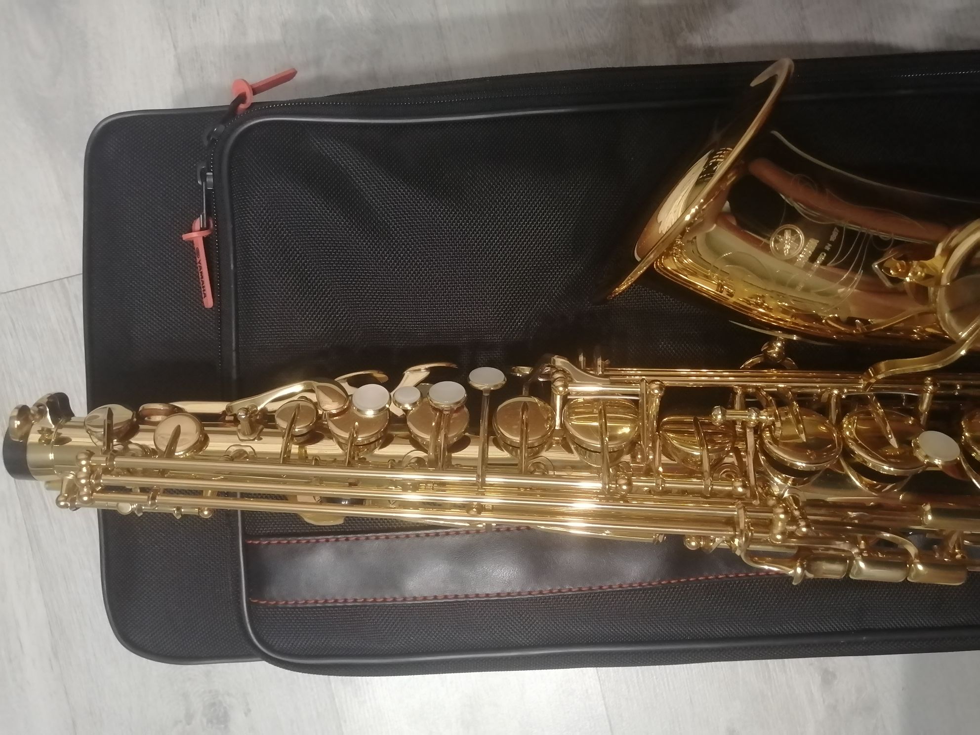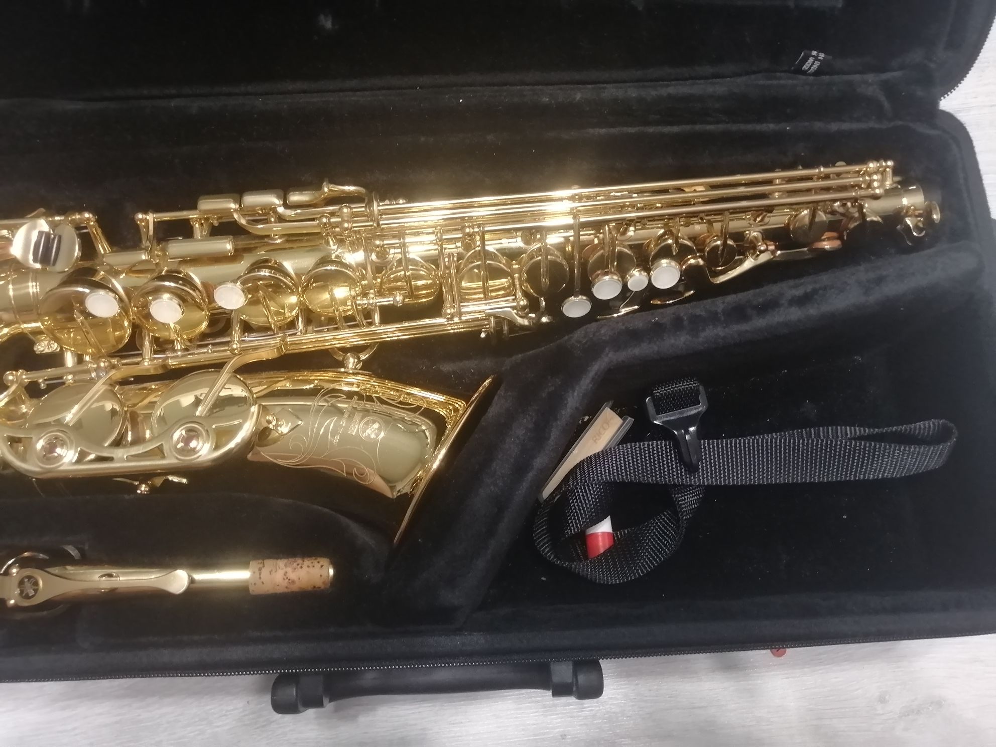 Комплектация полная: саксофон, эска, мундштук с лигатурой и колпачком , гайтан, фирменный очень удобный полужесткий кофр "Yamaha", трость.