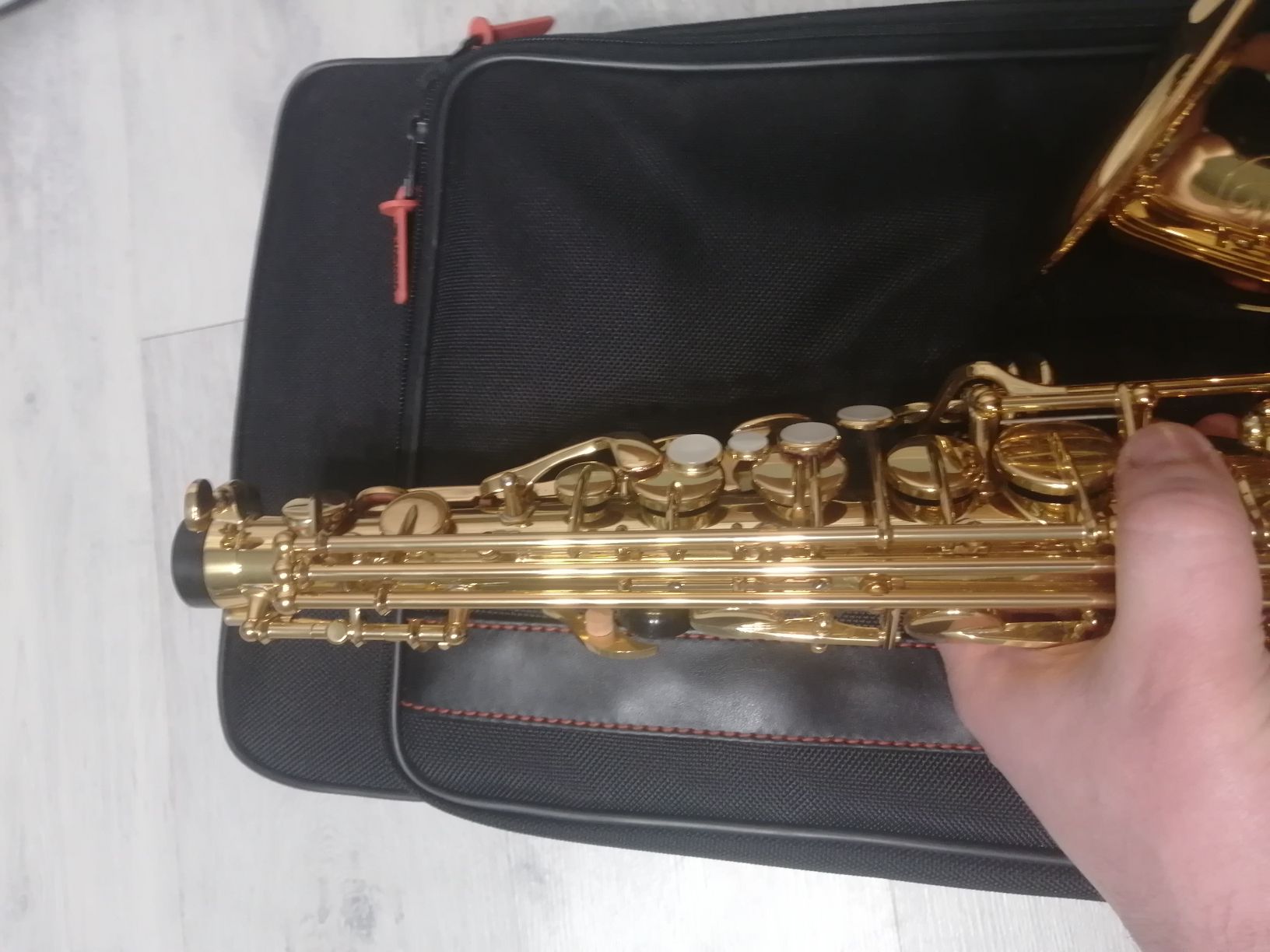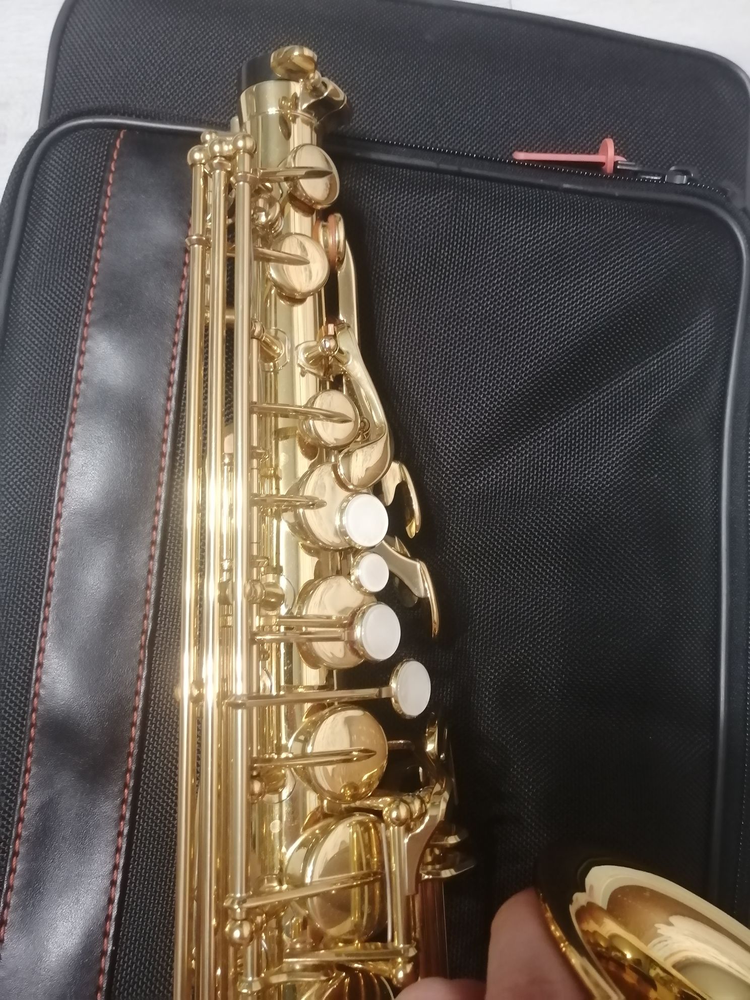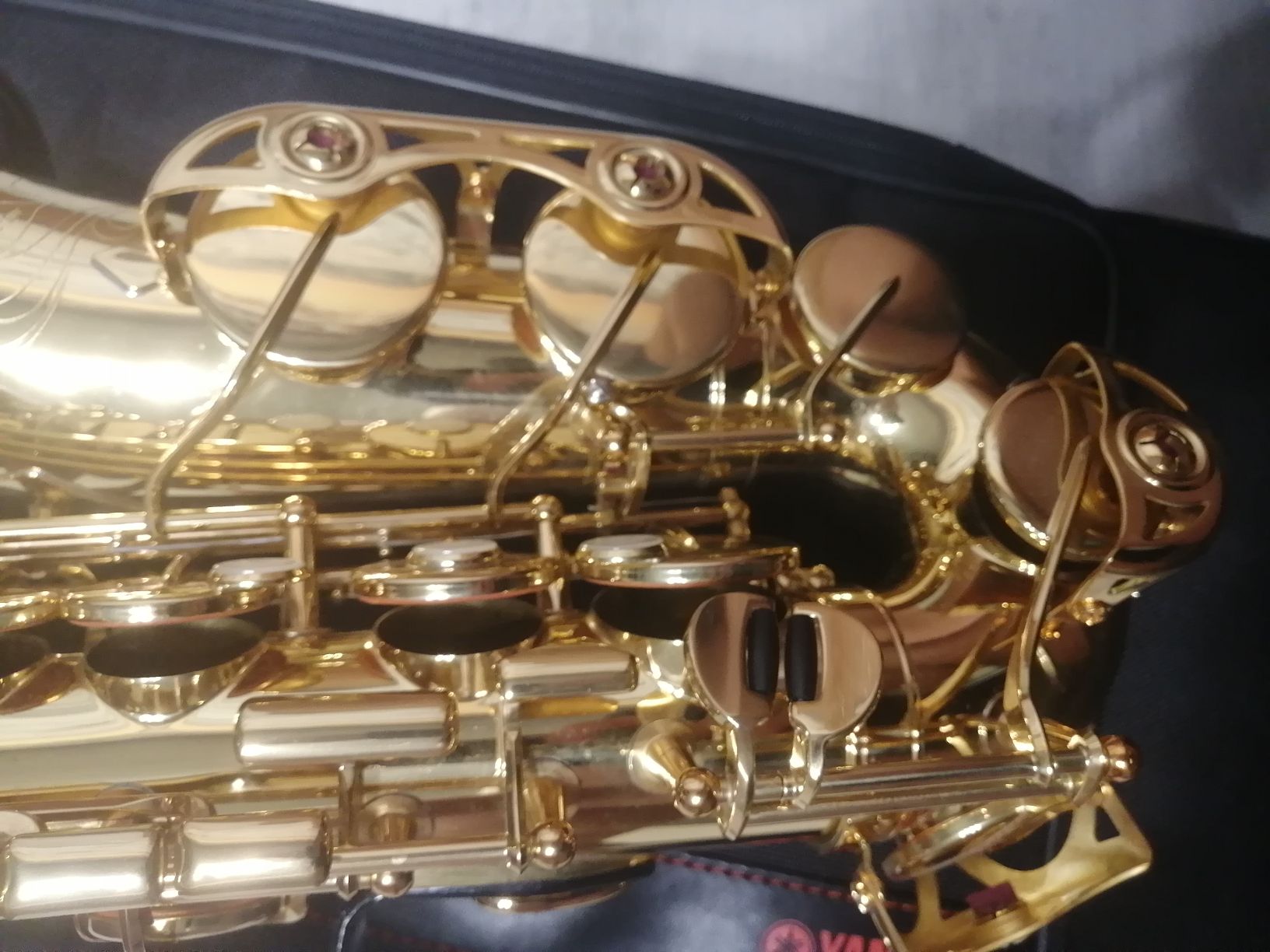 Комплектация полная: саксофон, эска, мундштук с лигатурой и колпачком , гайтан, фирменный очень удобный полужесткий кофр "Yamaha", трость.