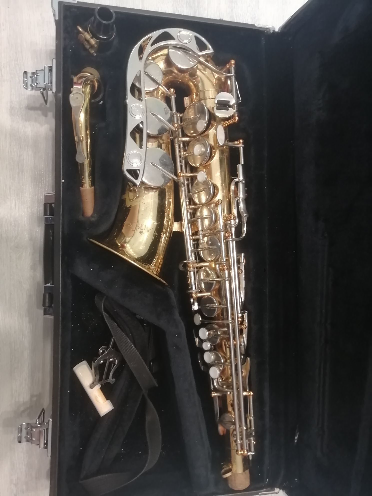 Комплектация полная: саксофон, эска, мундштук с лигатурой и колпачком, жесткий фирменный кофр "Yamaha" Gewa, гайтан, трость. Внимательно смотрите фото и видео звучания саксофона.