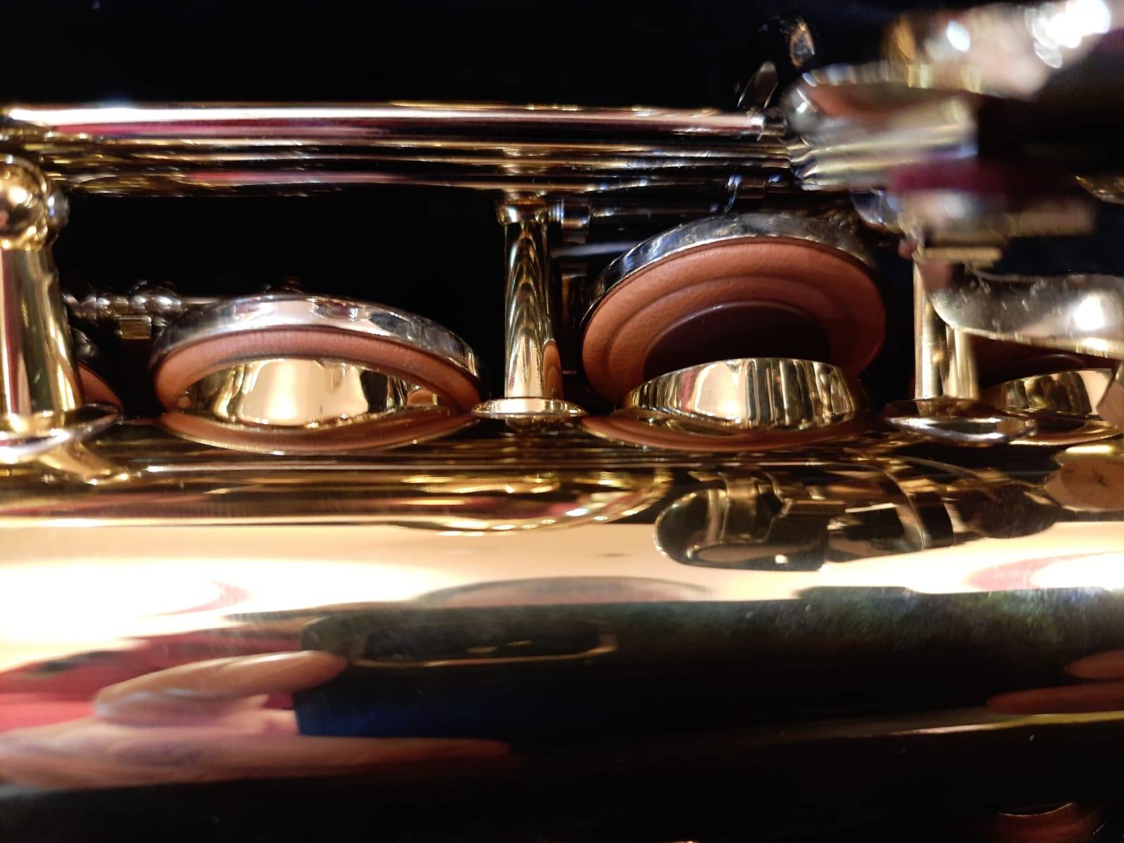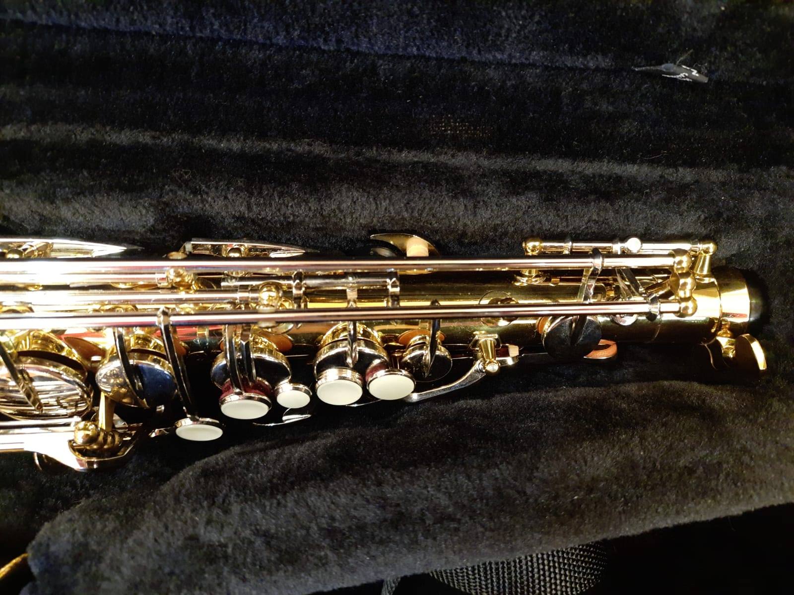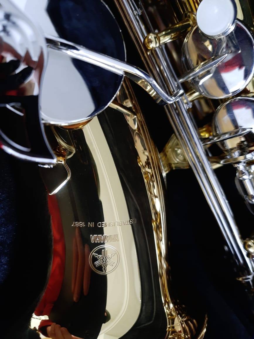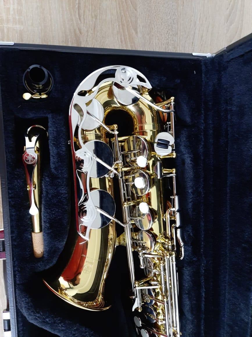 Комплектация полная: саксофон, эска, Мундштук "Yamaha 4c" с лигатурой и колпачком, гайтан, фирменный очень удобный жёсткий кофр "Yamaha", трость.