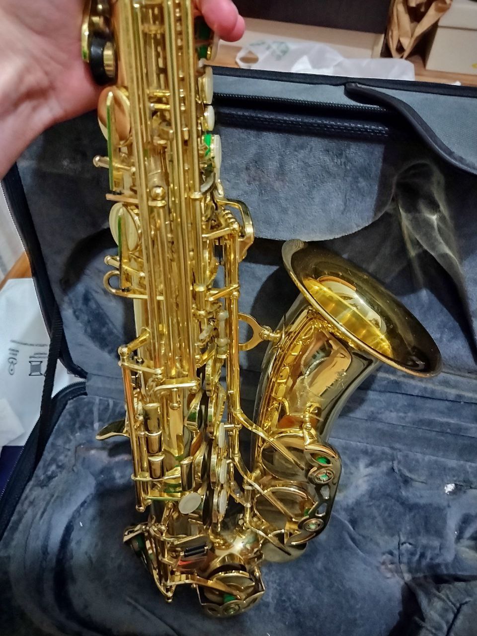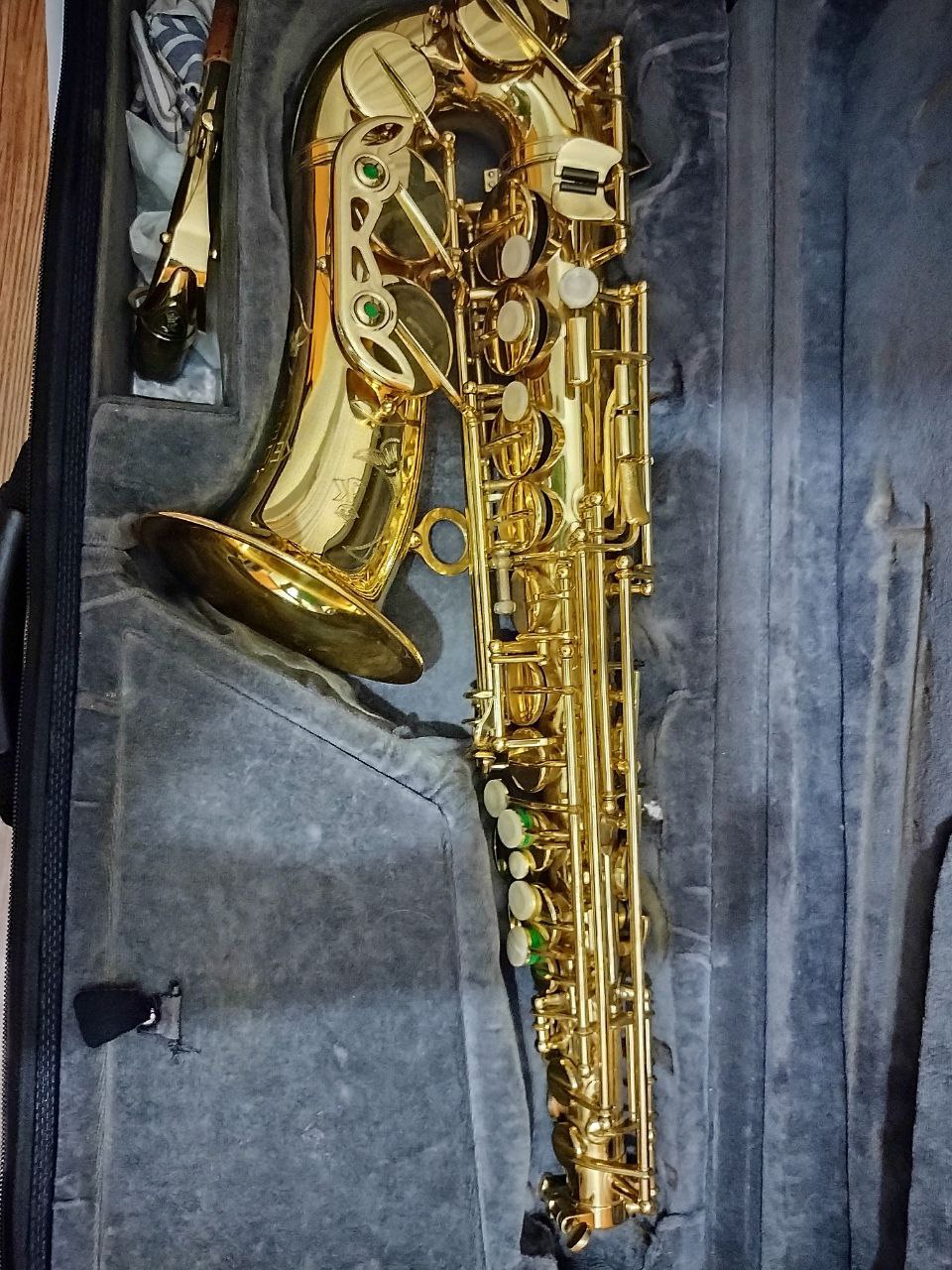 Саксофон в хорошем состоянии. Не падал. В комплекте с родным мундштуком, кожаной лигатурой и кейсом-рюкзаком. Германия.