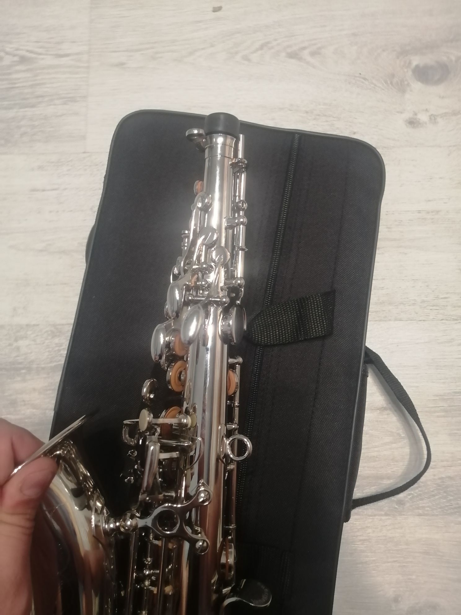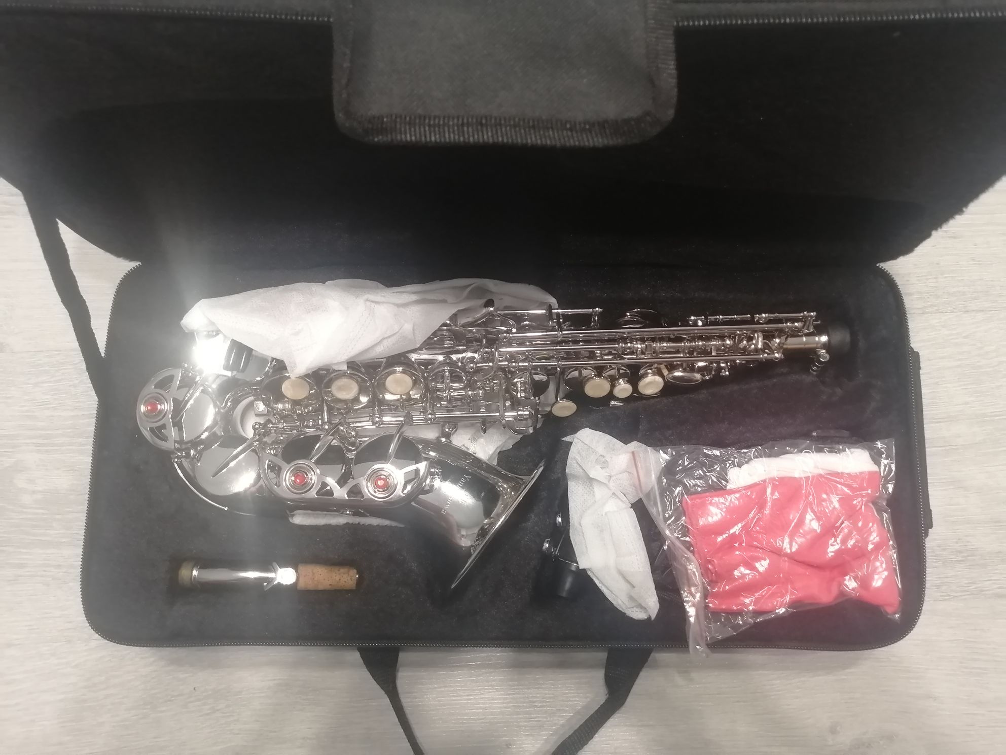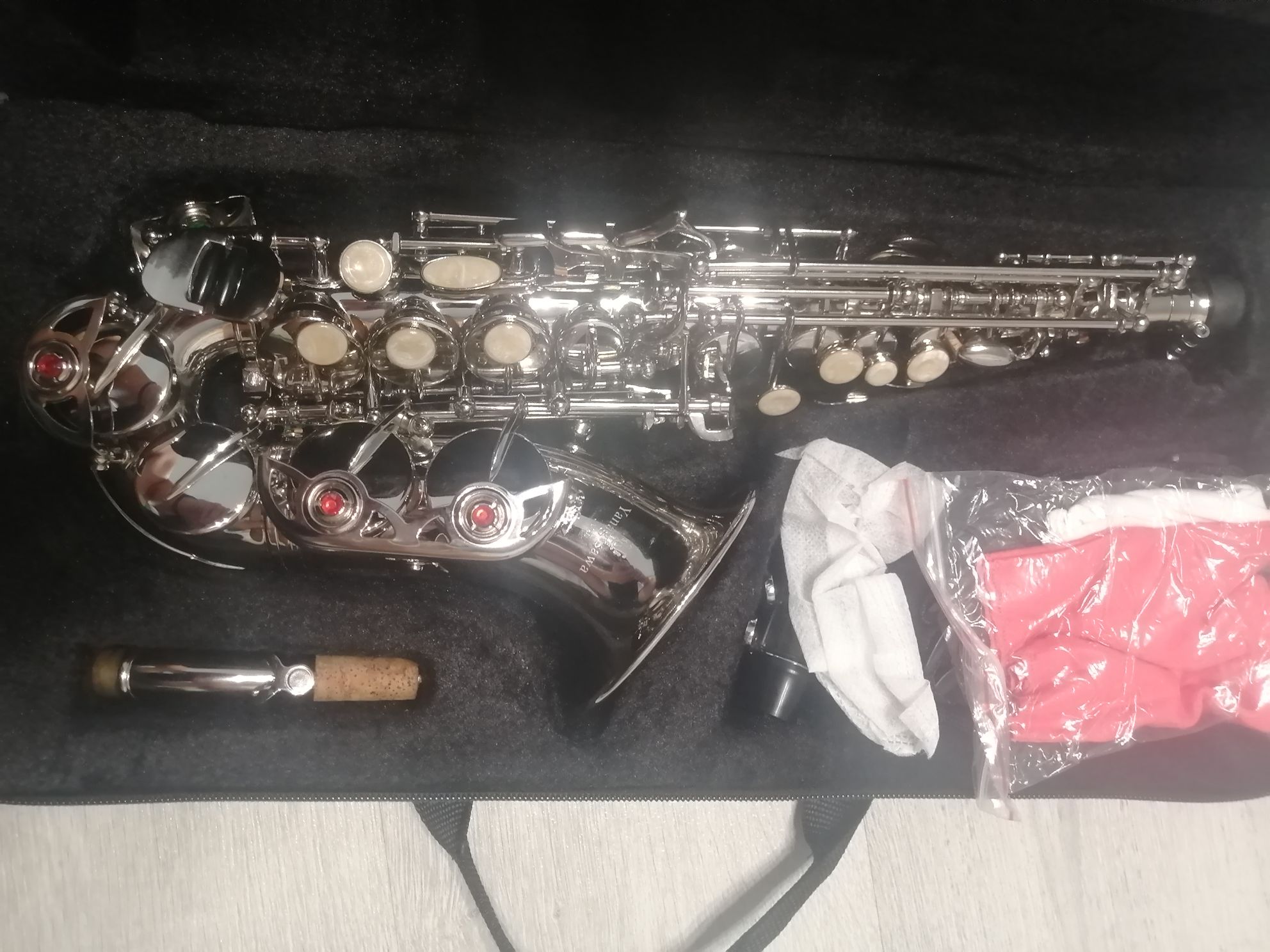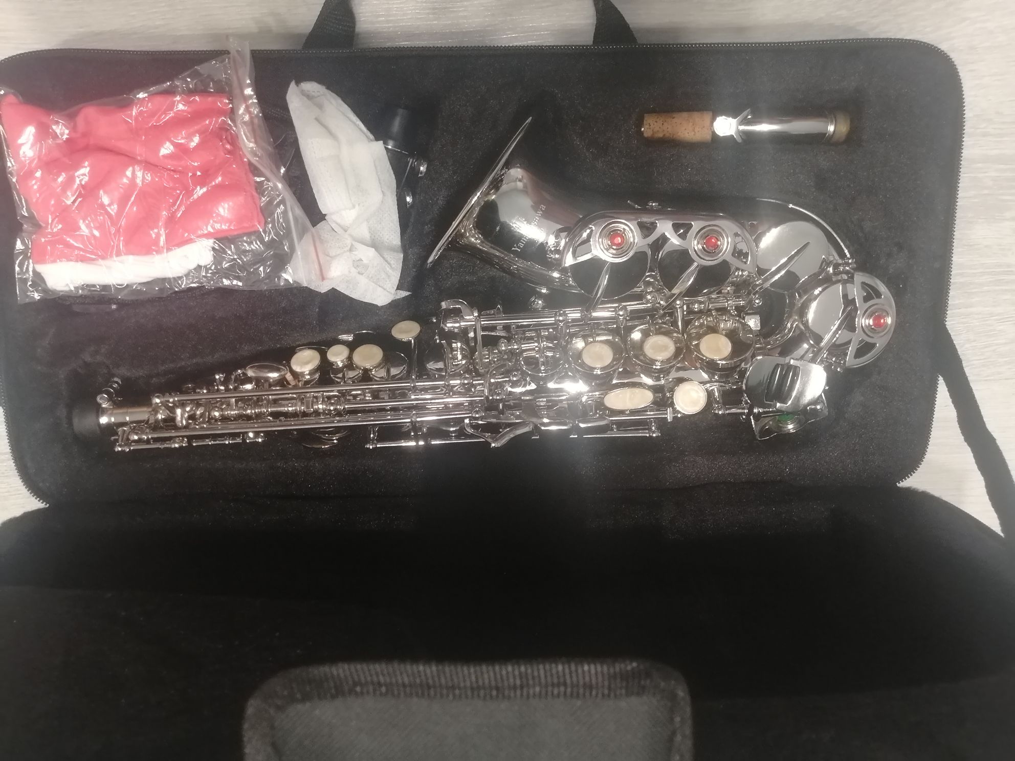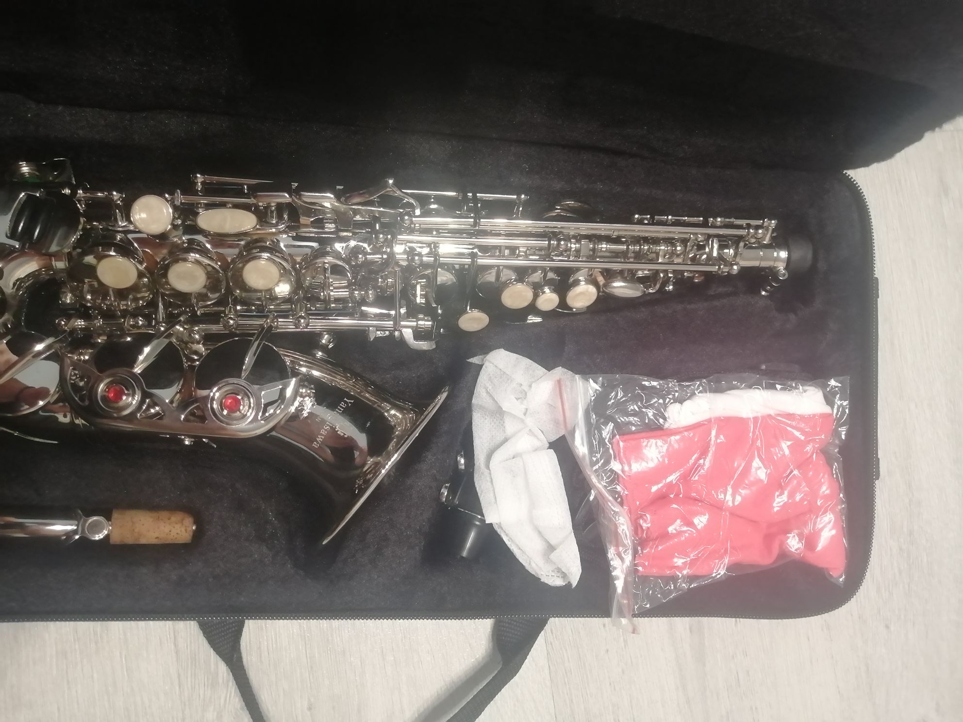 Комплектация следующая: саксофон, эска, мундштук с лигатурой и колпачком , жёсткий родной фирменный чехол,трости, гайтан.