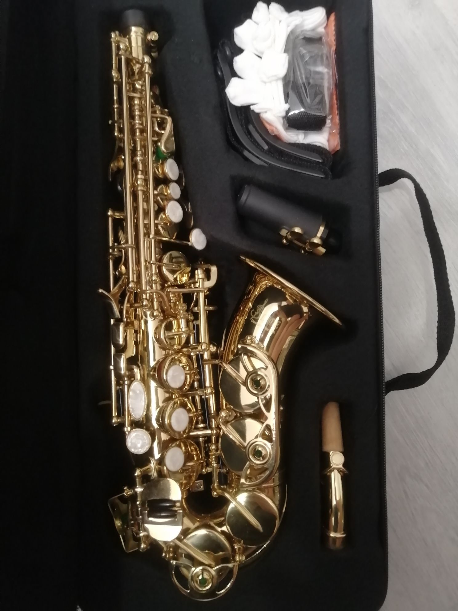 Комплектация полная: саксофон, эска, мундштук с лигатурой и колпачком , жёсткий родной фирменный чехол ,трости, гайтан.