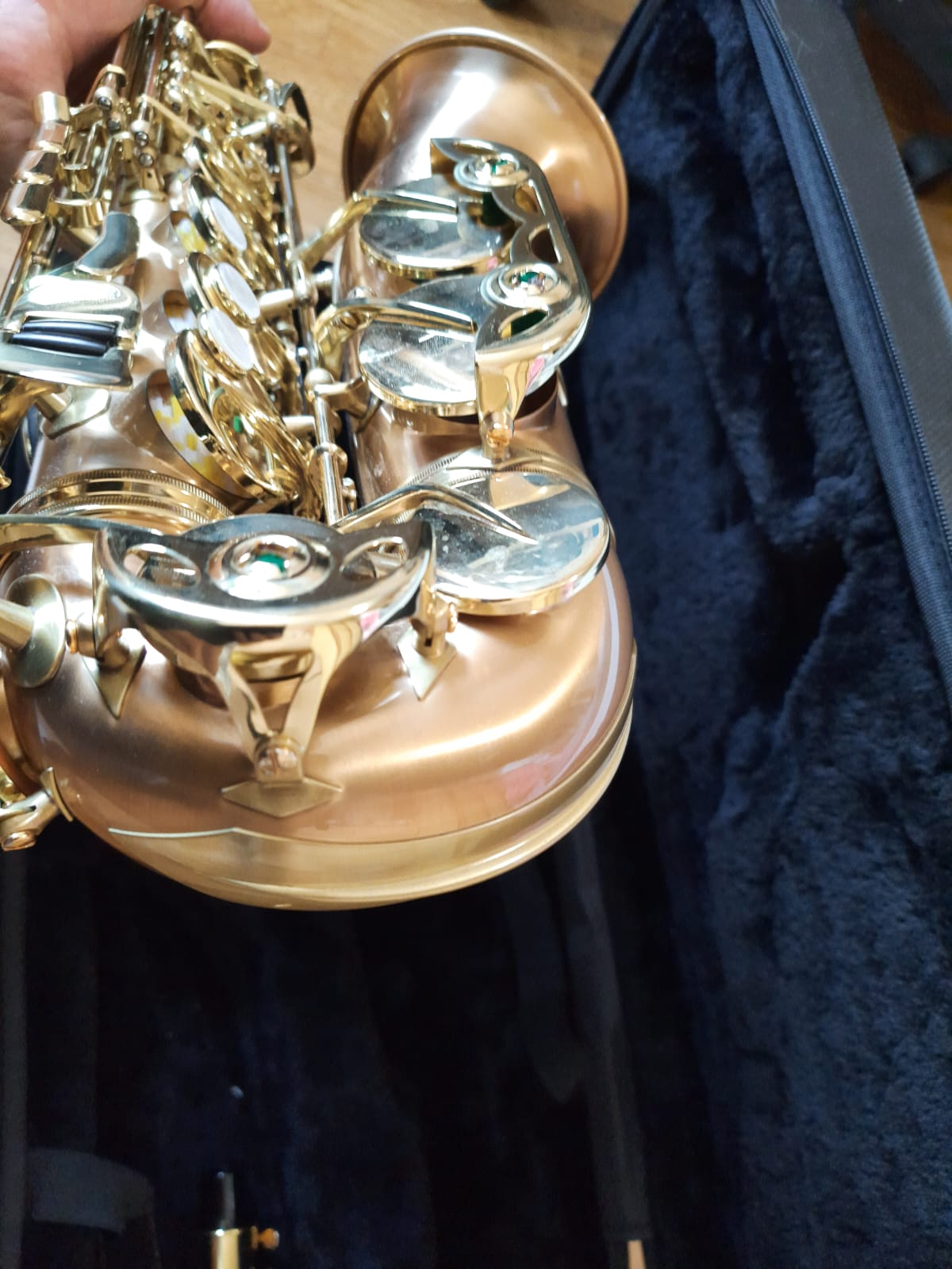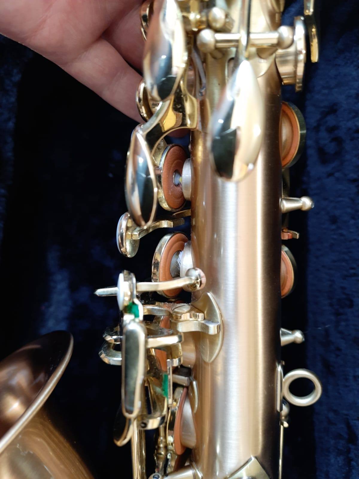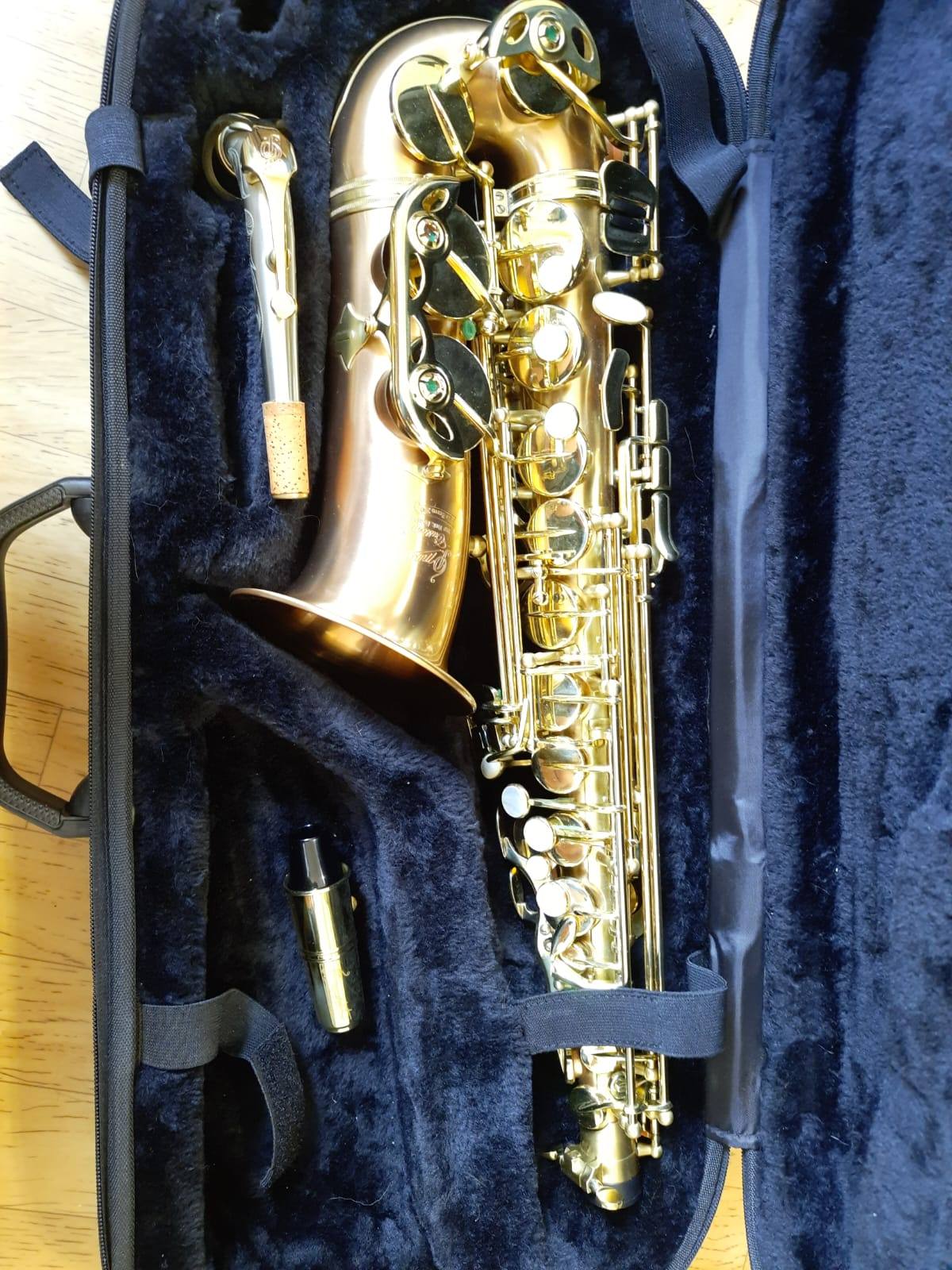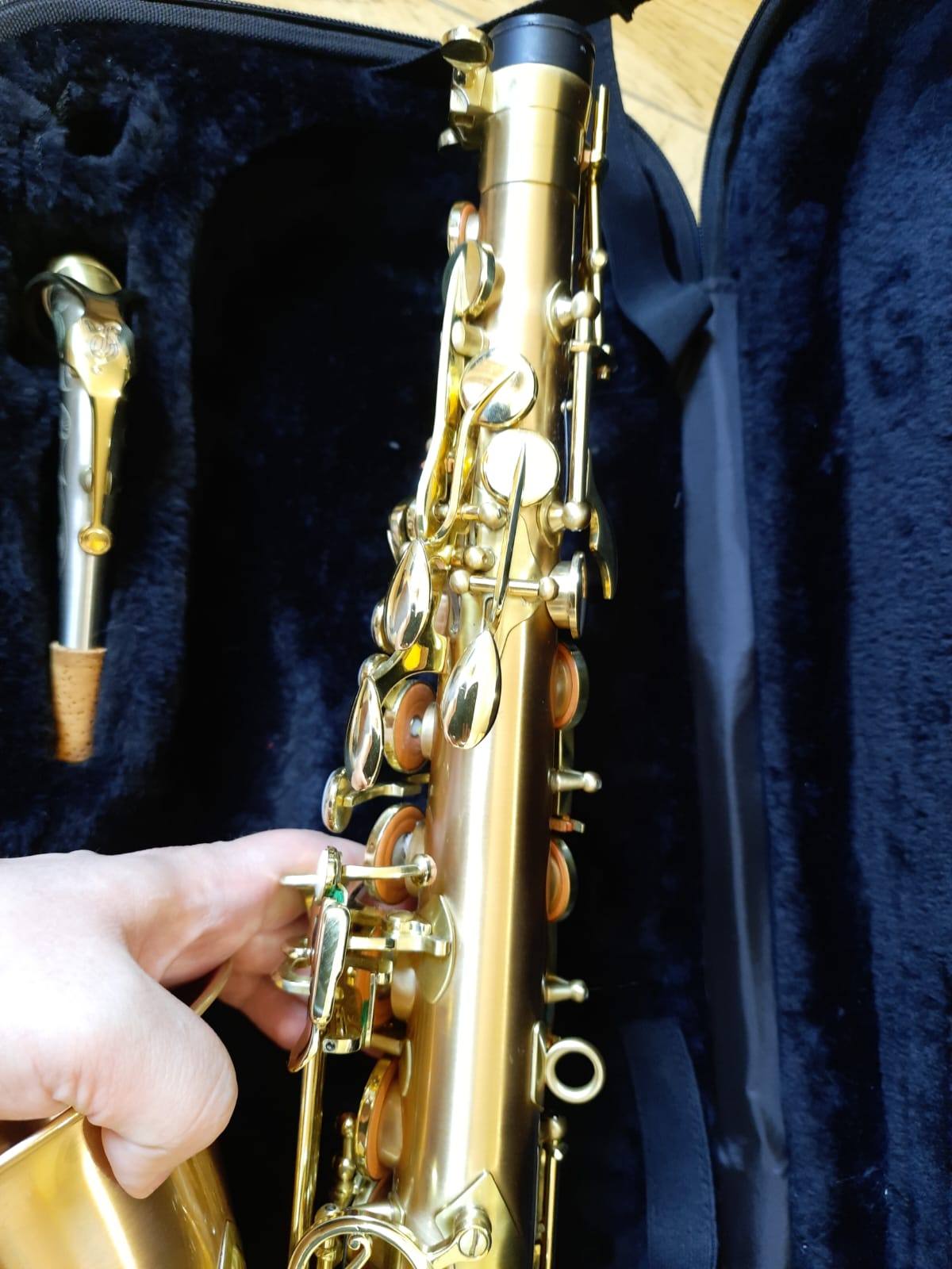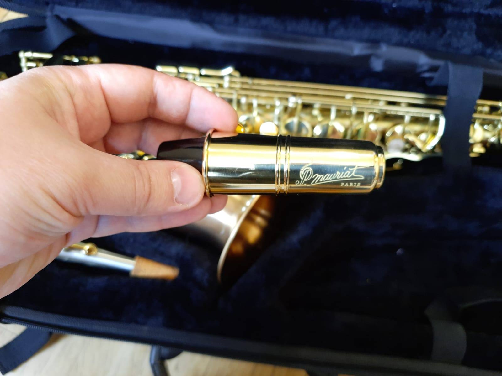 Комплектация полная: саксофон, эска, родной мундштук P. Mauriat с лигатурой и колпачком, гайтан, трость, фирменный очень удобный полужесткий кофр "P. Mauriat".