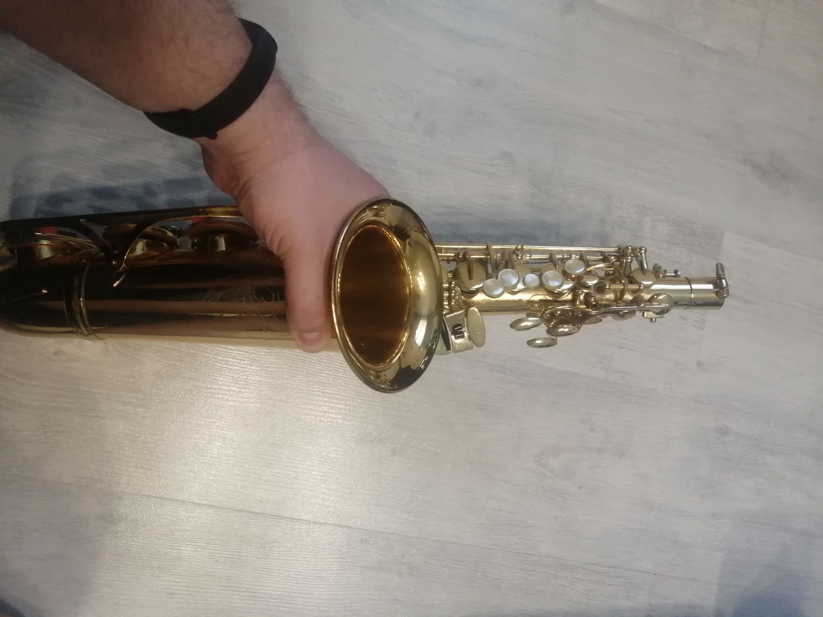 Состояние хорошее. Всё ноты берутся без проблем. Саксофон строит и кроет. Есть небольшие царапины на корпусе инструмента, но на звучание и строй инструмента они никоим образом не влияют.