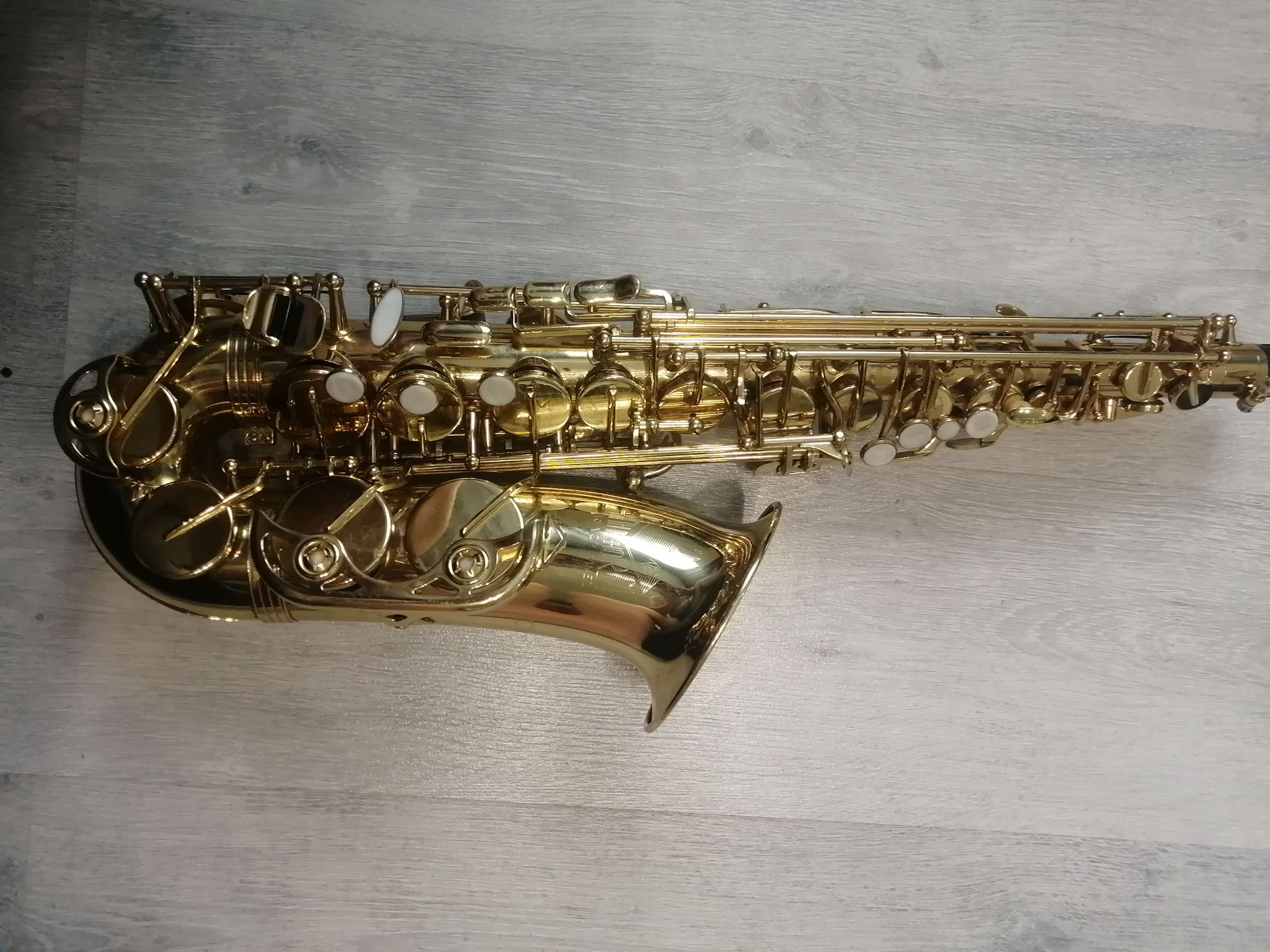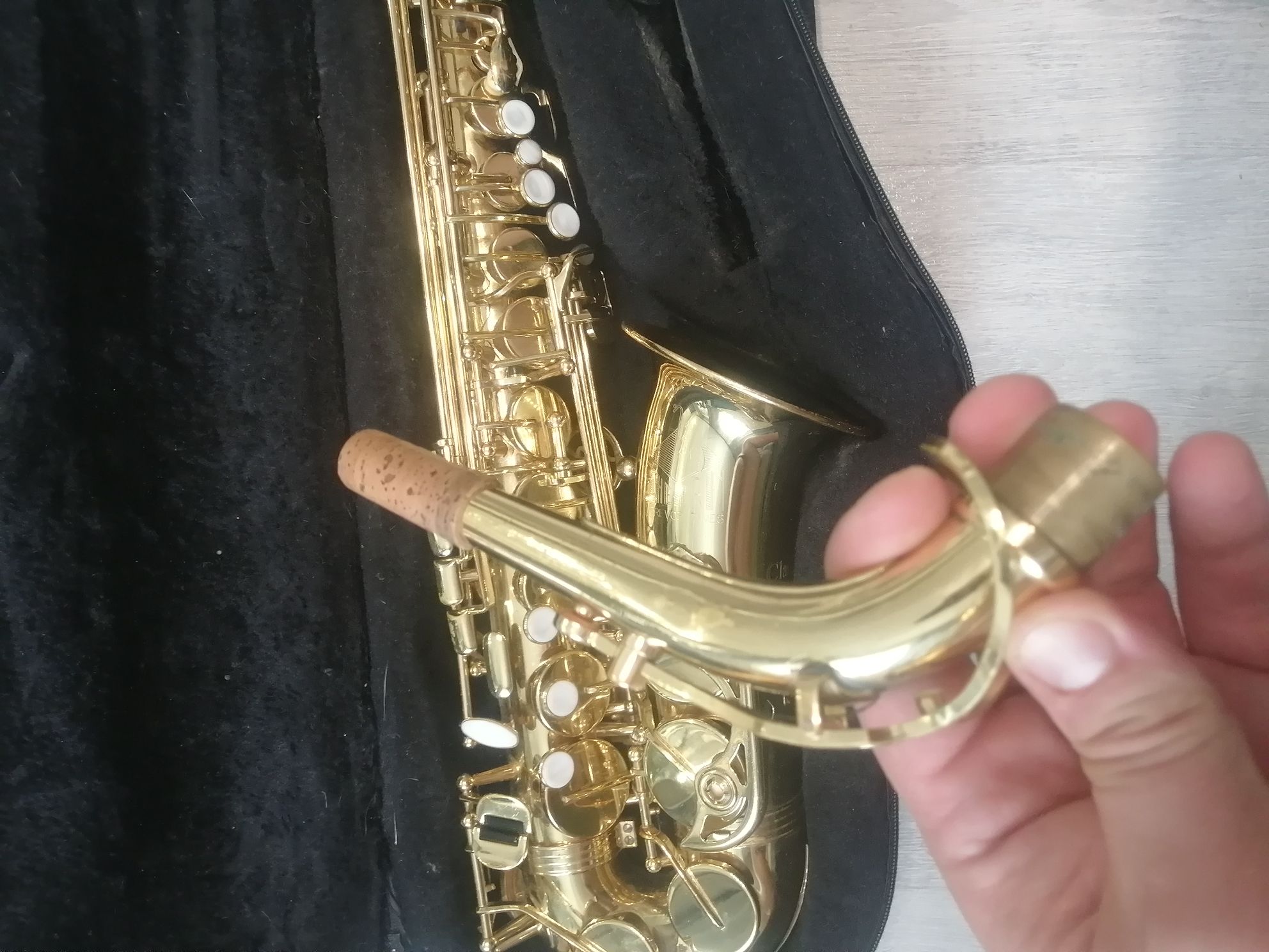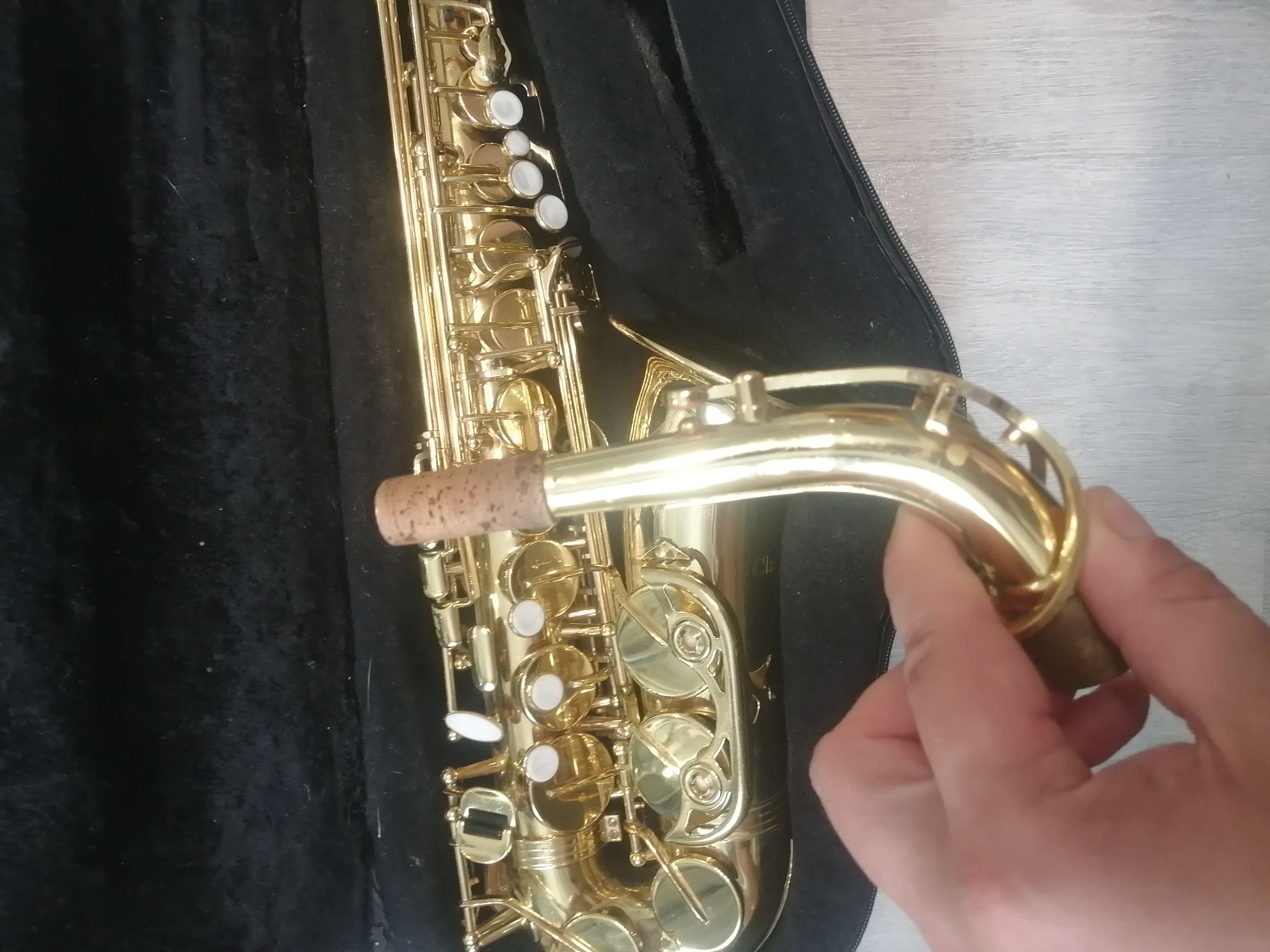 Комплектация полная: саксофон, эска, мундштук с лигатурой и колпачком , гайтан, фирменный очень удобный полужесткий кофр , трость, наклейки на мундштук, мундштук.