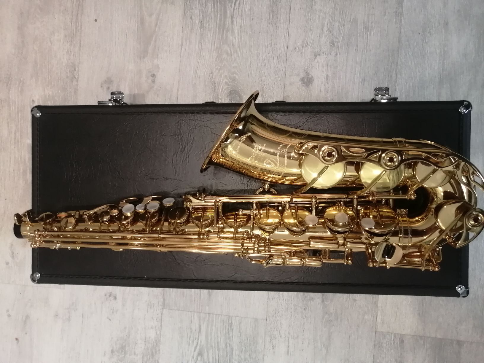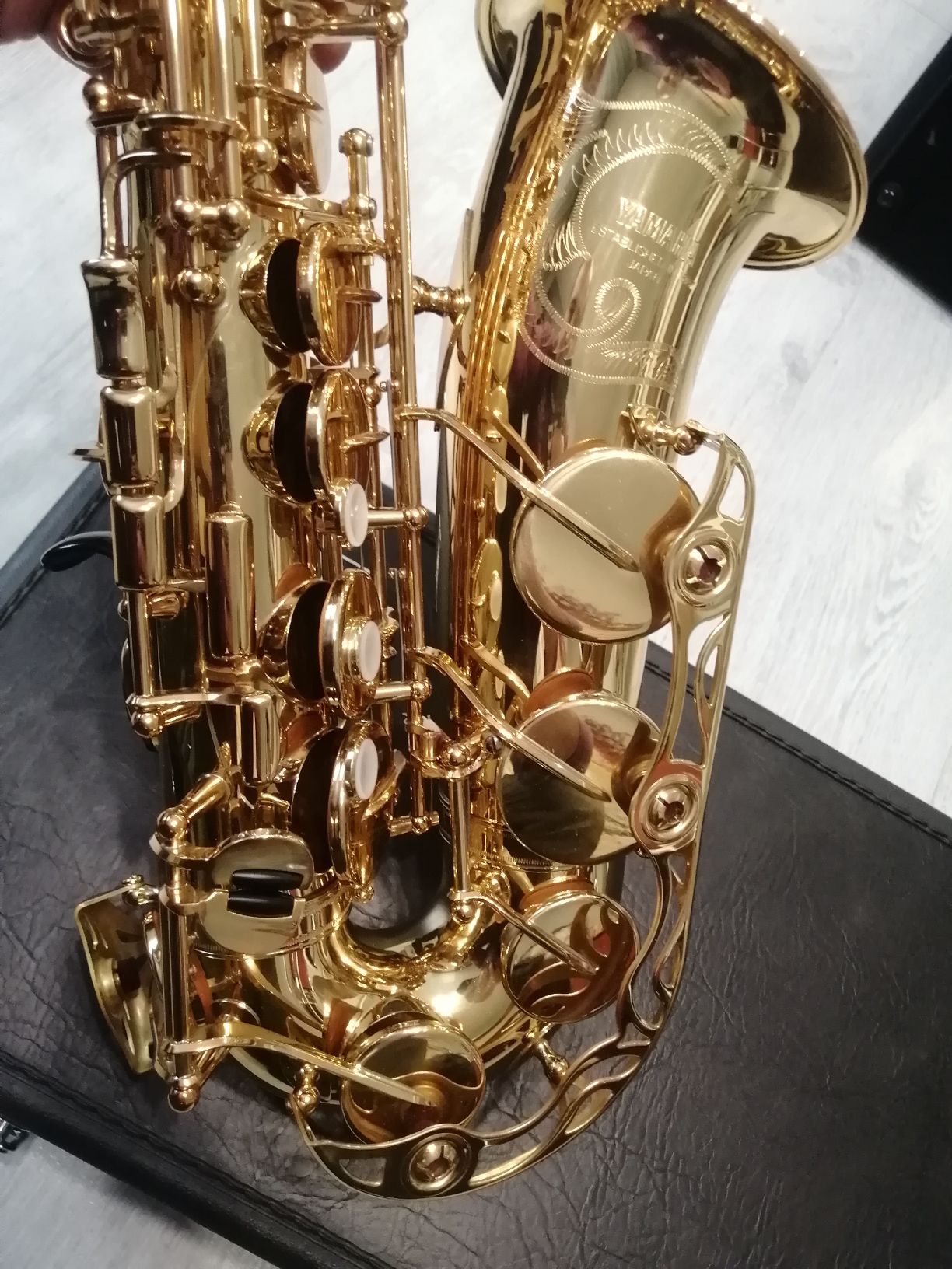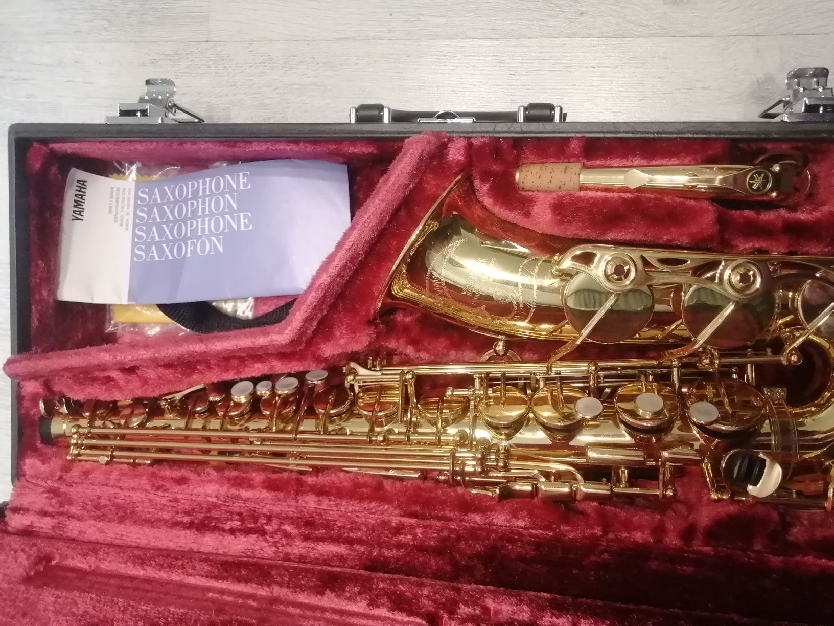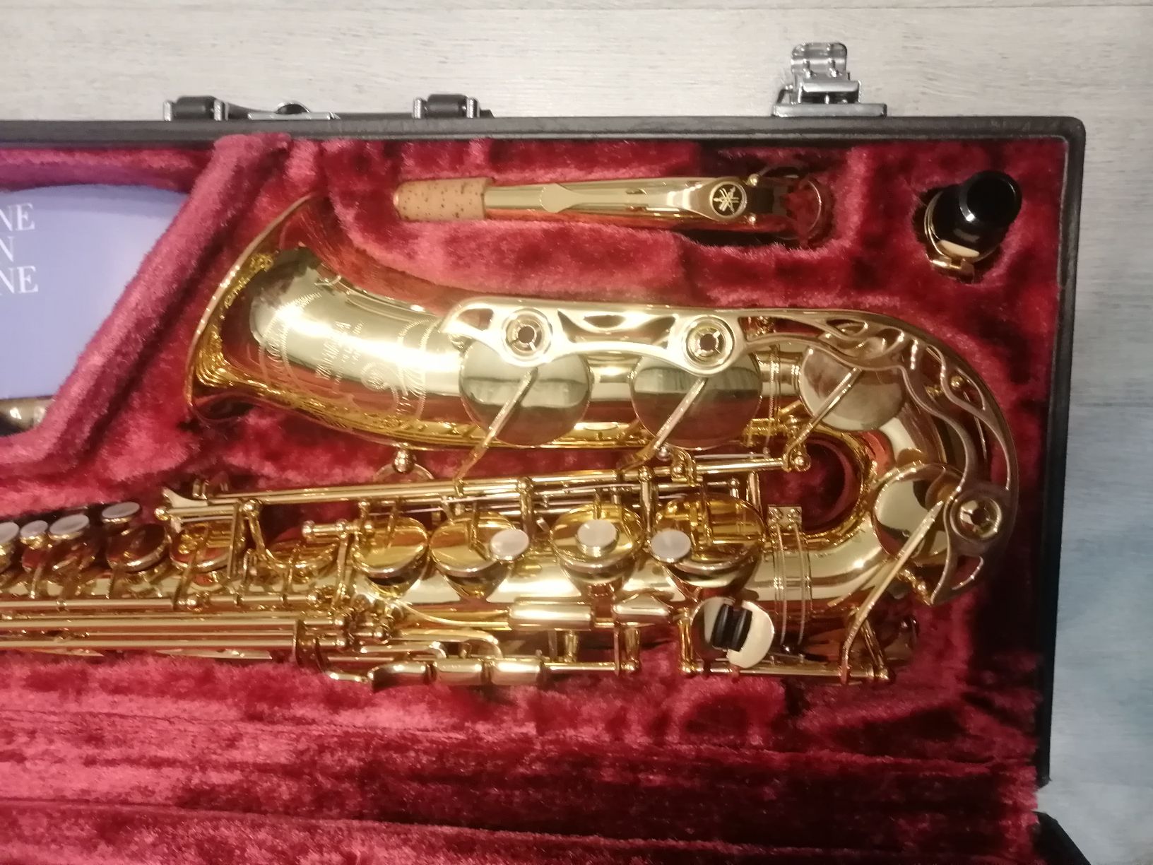 Комплектация полная: саксофон, эска, мундштук Yamaha 4c с лигатурой и колпачком, гайтан, фирменный жесткий кофр, трость.