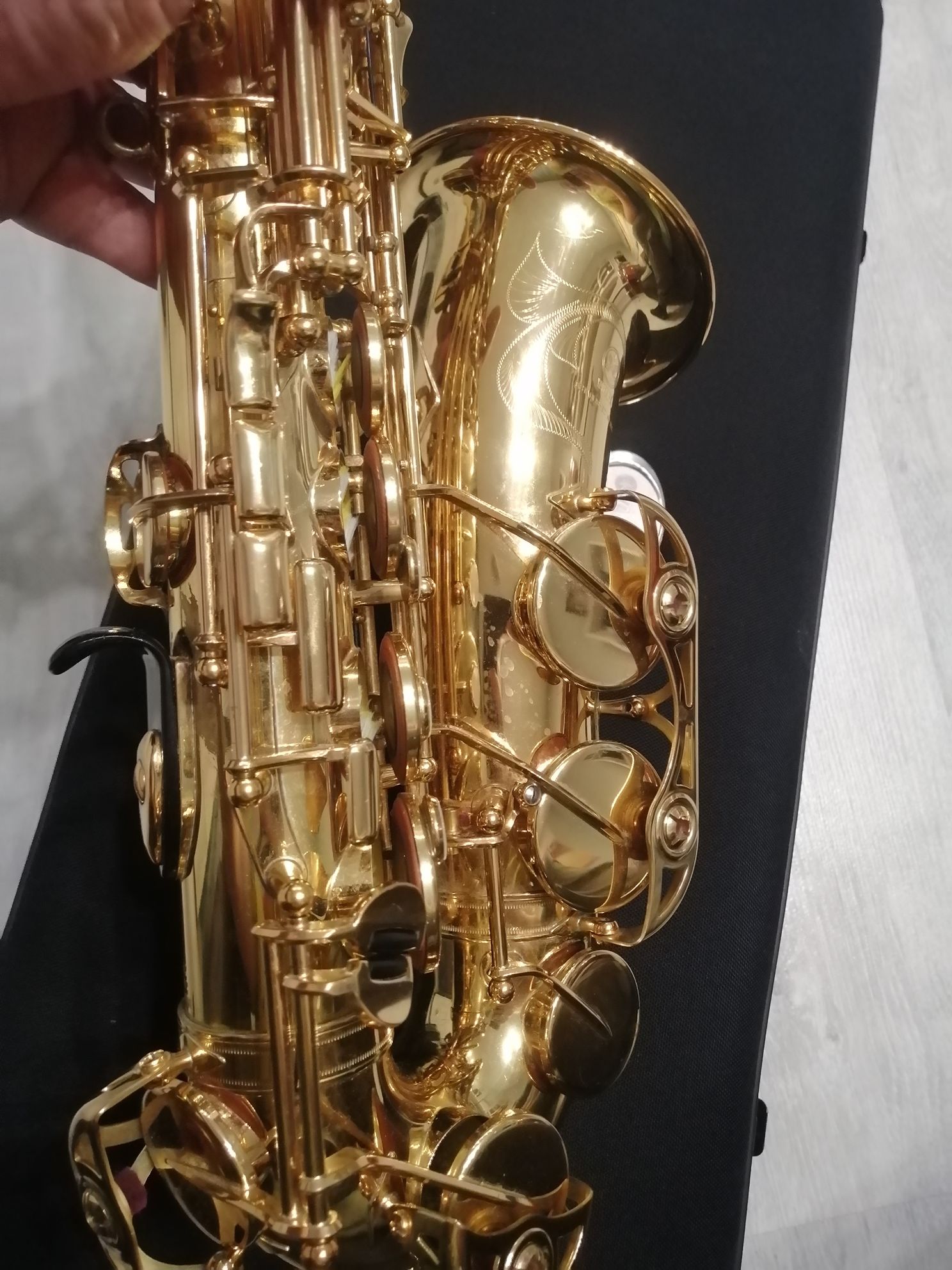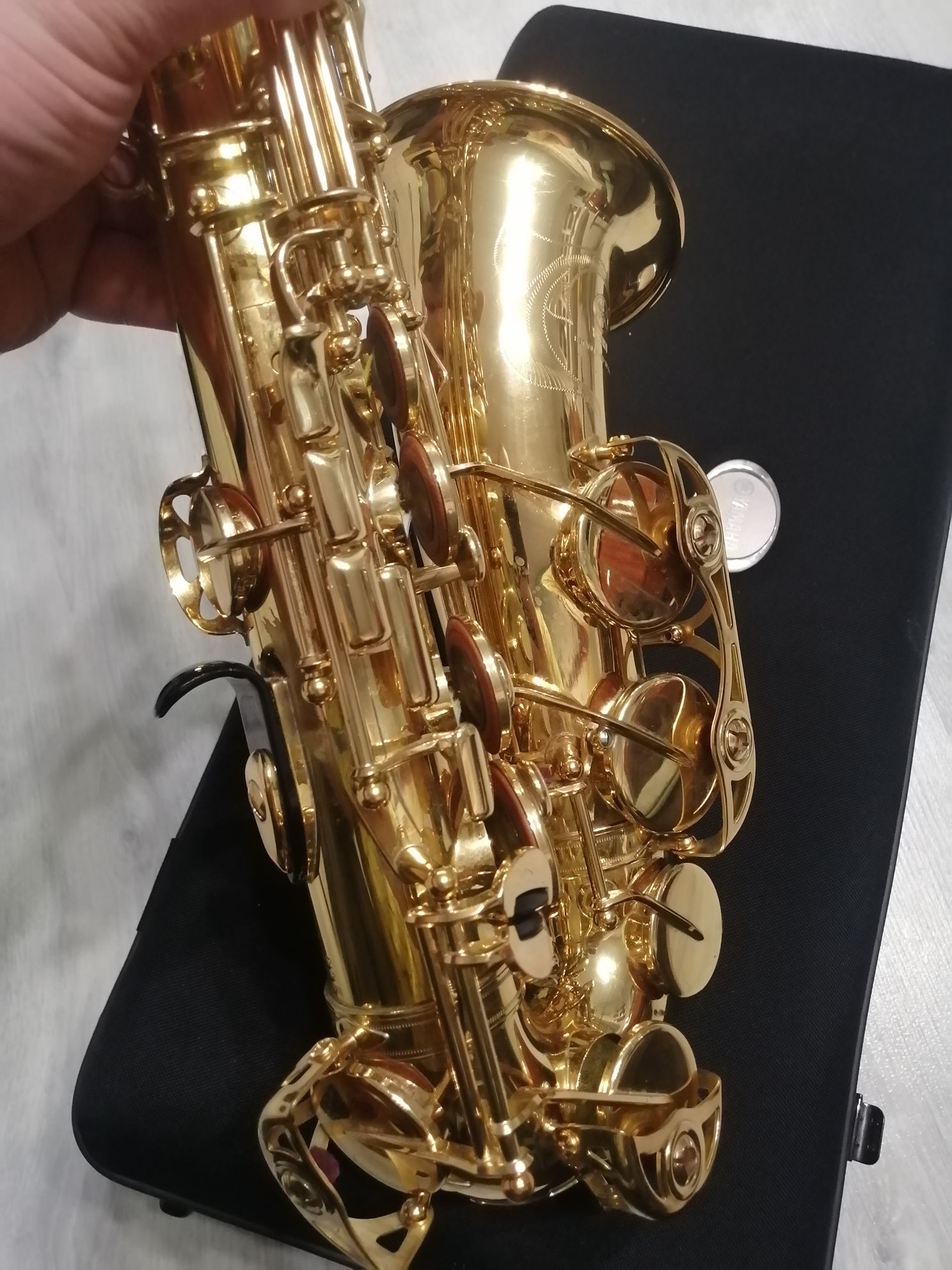 Состояние хорошее. Инструмент безупречно кроет, идеально строит, шикарно тембрит. На корпусе и эске есть крайне незначительные потертости и царапины (внимательно смотрите фото), эти косметические нюансы абсолютно никаким образом на звучание саксофона не влияют.