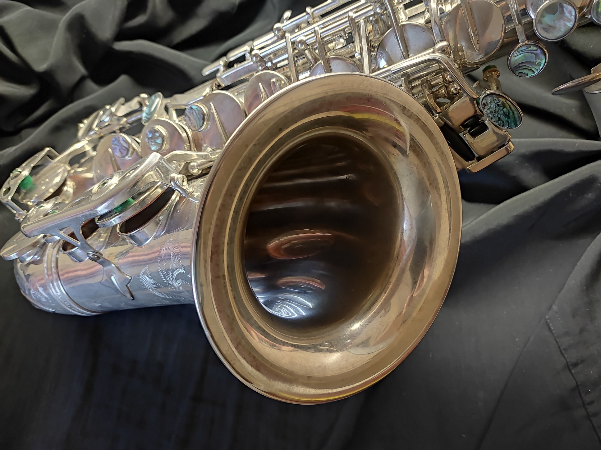 Саксофон с развацованными тональными отверстиями, что значительно продлевает срок службы подушек, всё они в отличном состоянии и не требуют замены.
