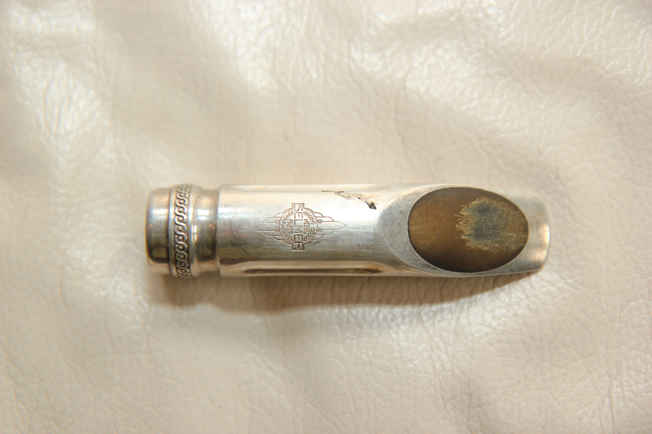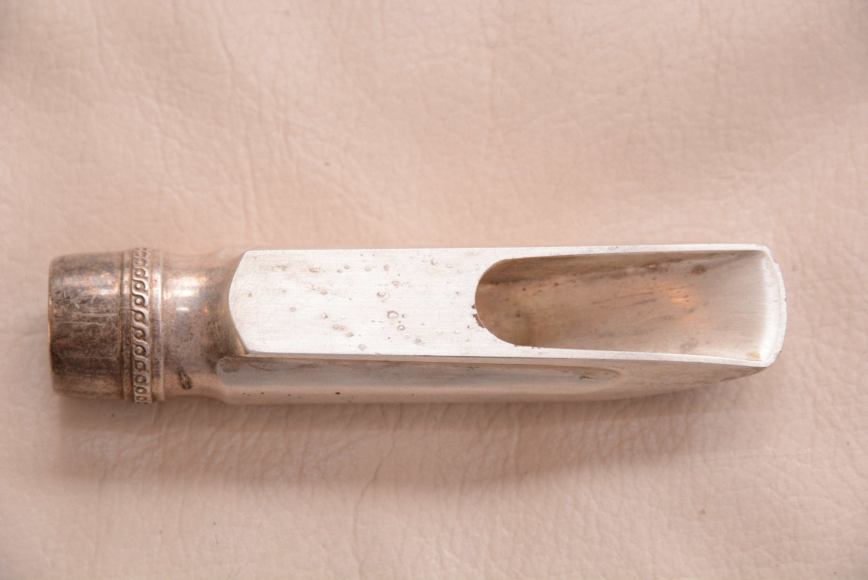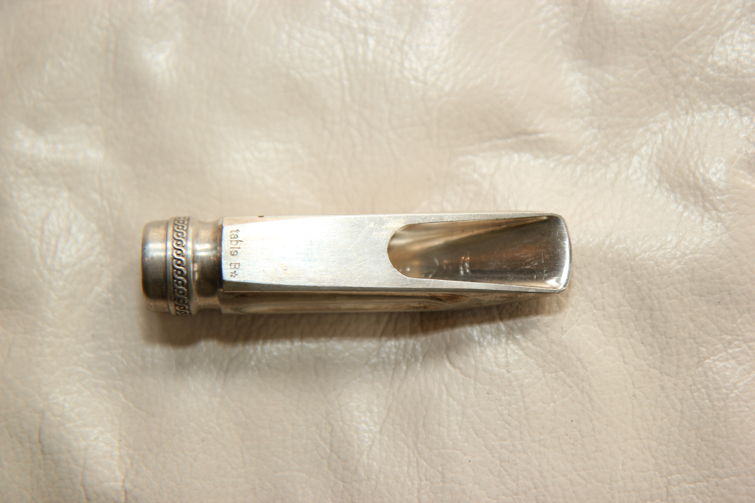 Selmer Metal Short Shank Table B* (1950г.) - знаменитый мундштук с коротким хвостом, имеет довольно маленькую пасть 0,060. Но за счет конструкции звучит очень круто. Родное посеребрение 100%.