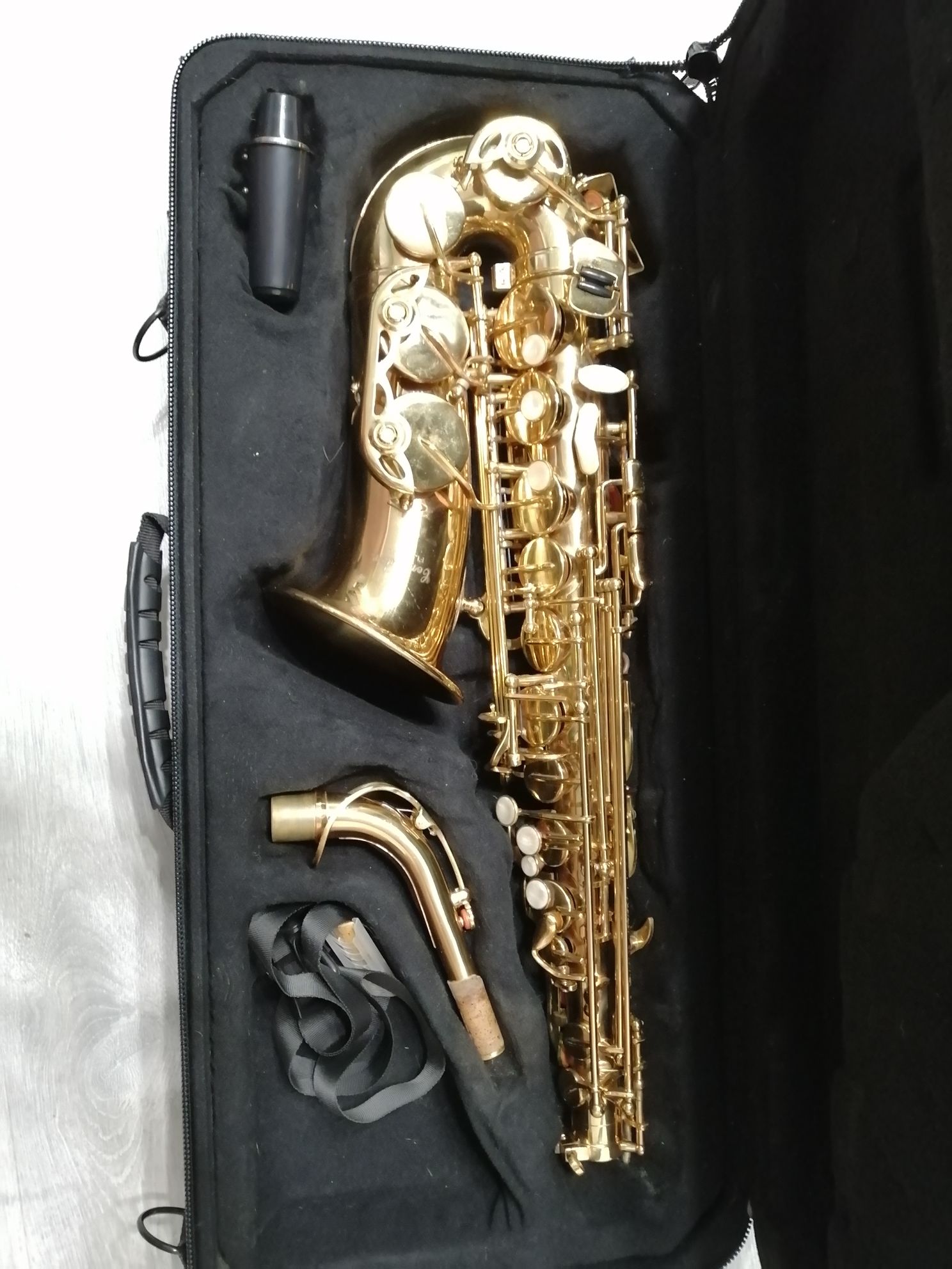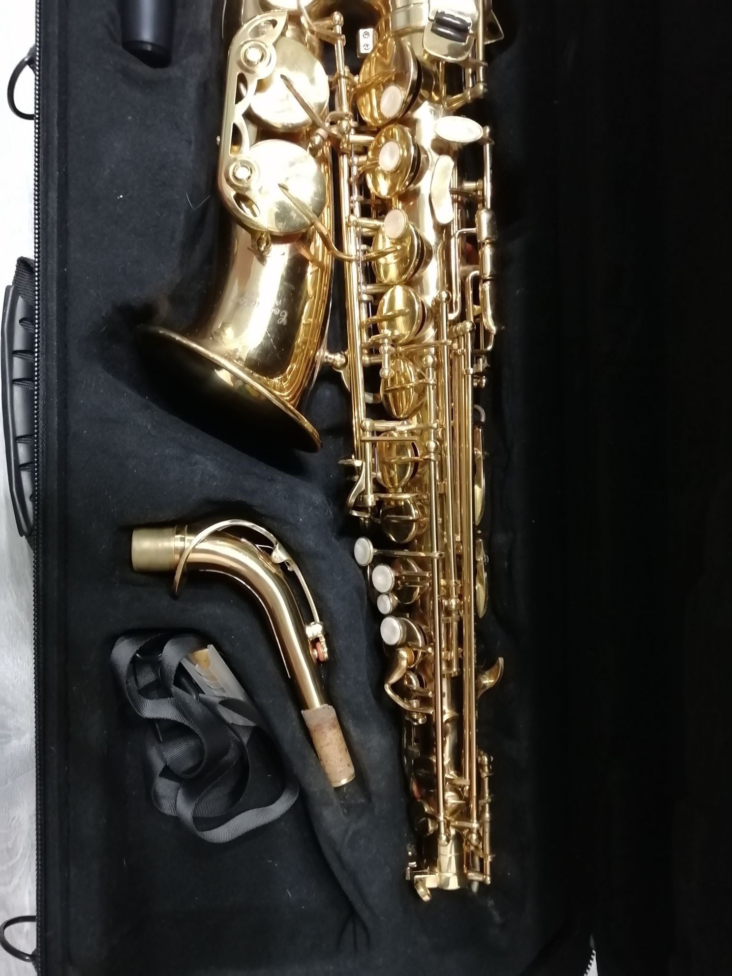 Комплектация полная: саксофон, эска, мундштук с лигатурой и колпачком , гайтан, фирменный очень удобный (с заплечными лямками) полужесткий кофр ", трость, наклейки на мундштук. Внимательно смотрите фото и видео звучания саксофона. На пересыл согласен. Цена 25 тысяч рублей.