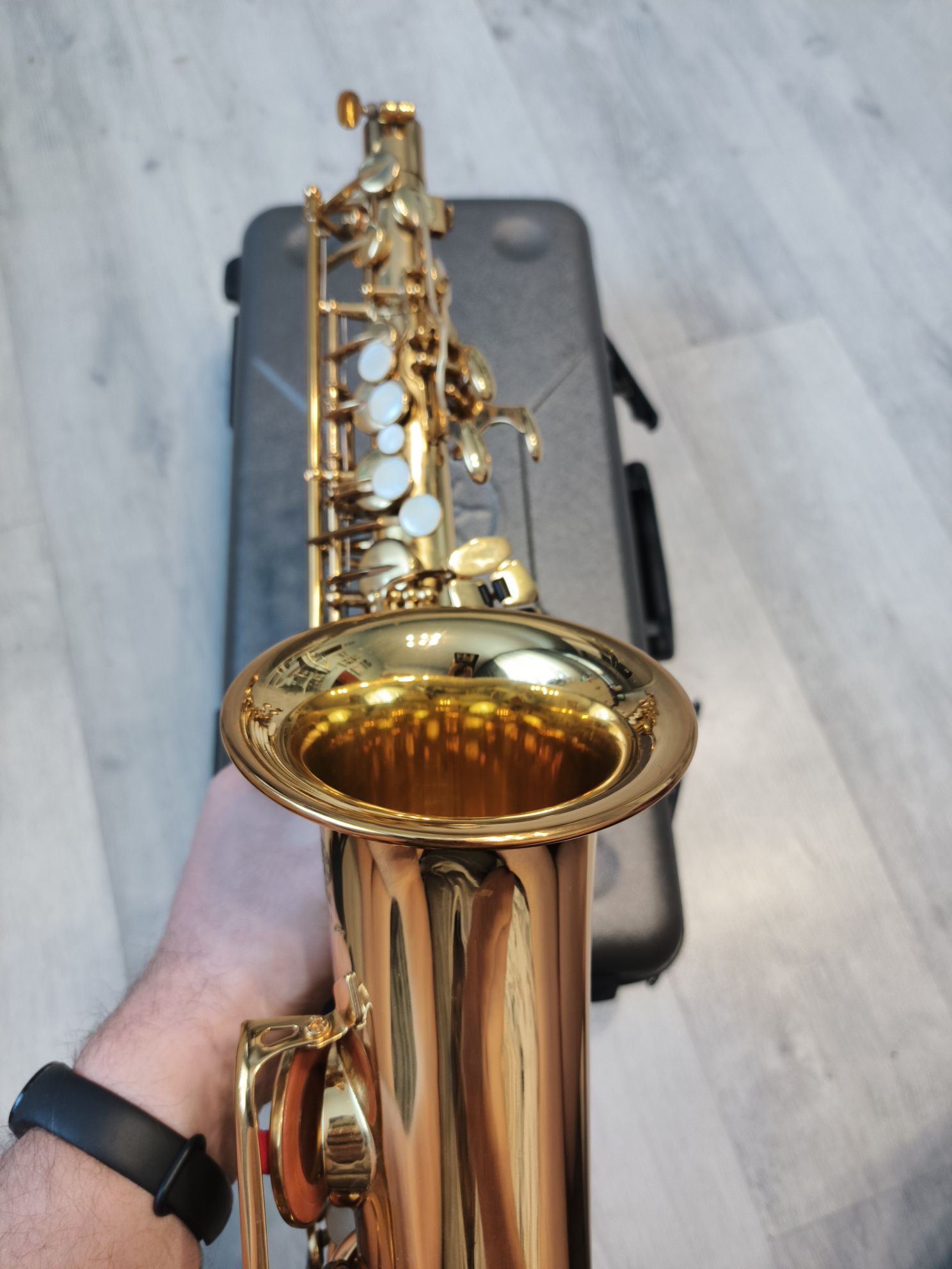Комплектация полная: саксофон, эска, абсолютно новый мундштук Yamaha 4с с лигатурой и колпачком, гайтан, фирменный очень удобный жесткий кофр "Yamaha, трость.