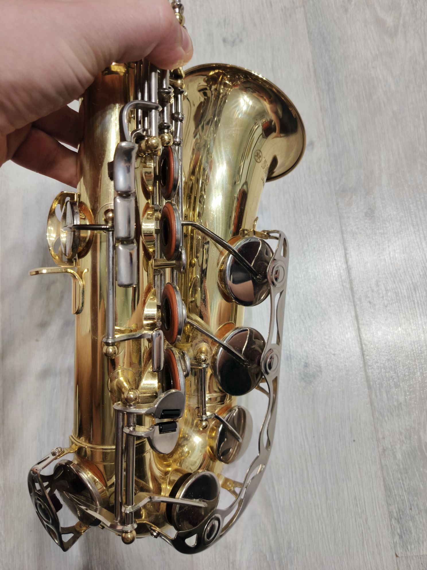 Комплектация полная: саксофон, эска, мундштук Yamaha 4 c с лигатурой и колпачком, гайтан, фирменный очень удобный жесткий кофр Yamaha, трость.