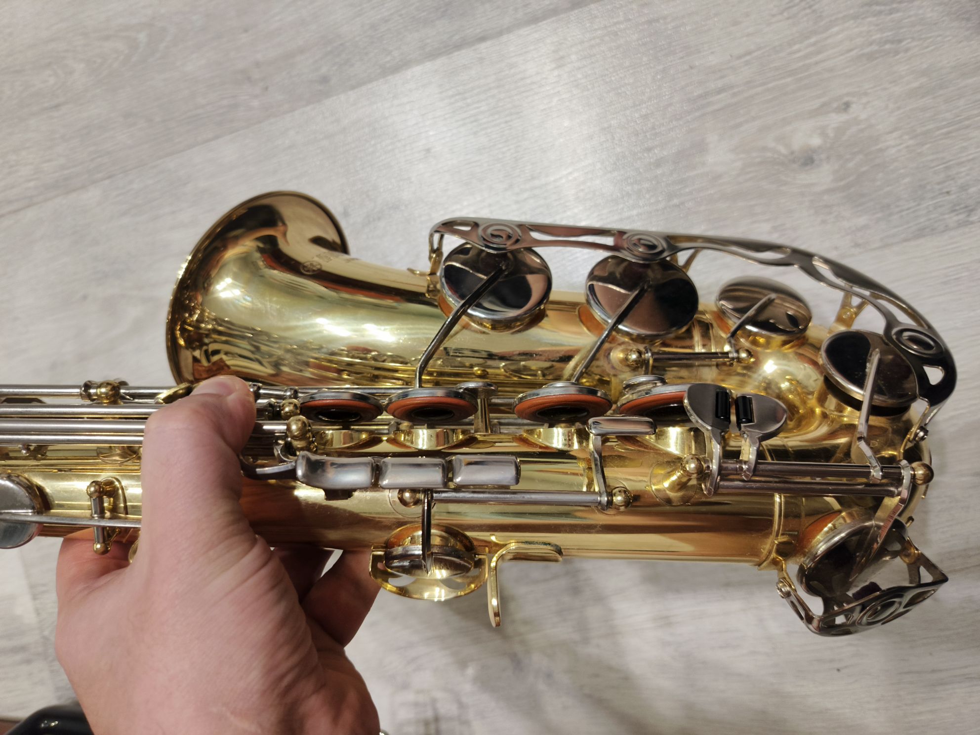 Саксофон в хорошем состоянии. Подушки стоят не новые, но кроет и строит инструмент отлично (видео звучания прикрепил).