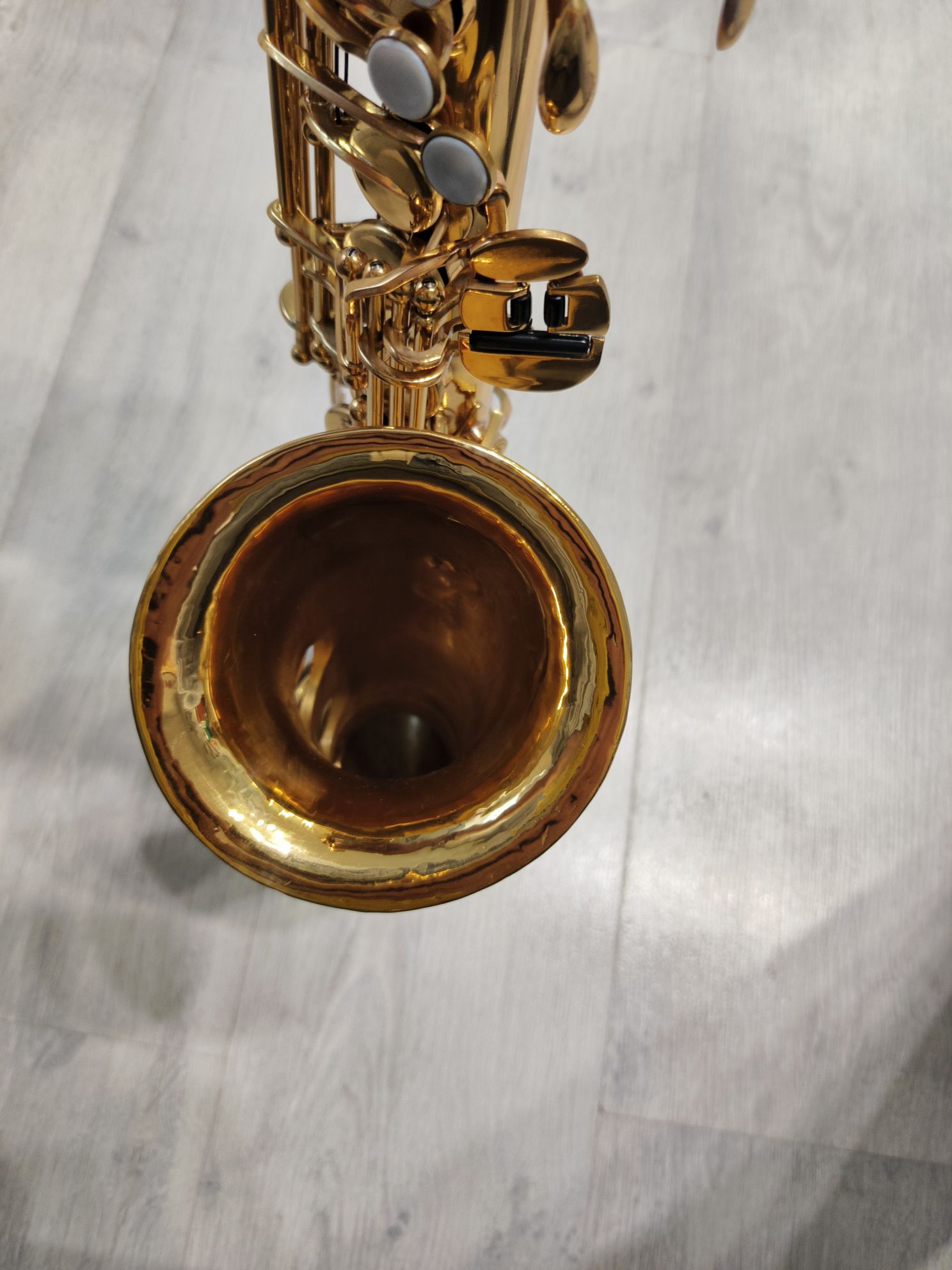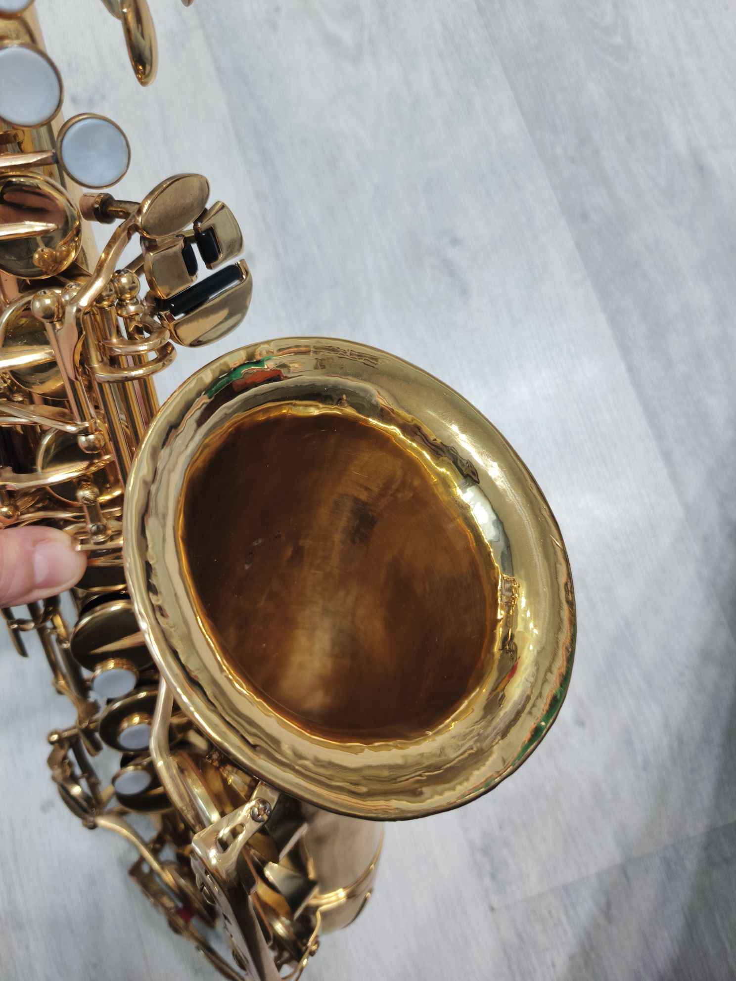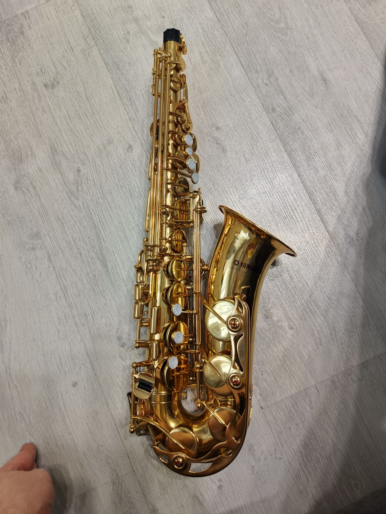 Комплектация полная: саксофон, эска, оригинальный мундштук Yamaha 4c с лигатурой и колпачком, наклейки на мундштук, гайтан, очень удобный жесткий кофр.